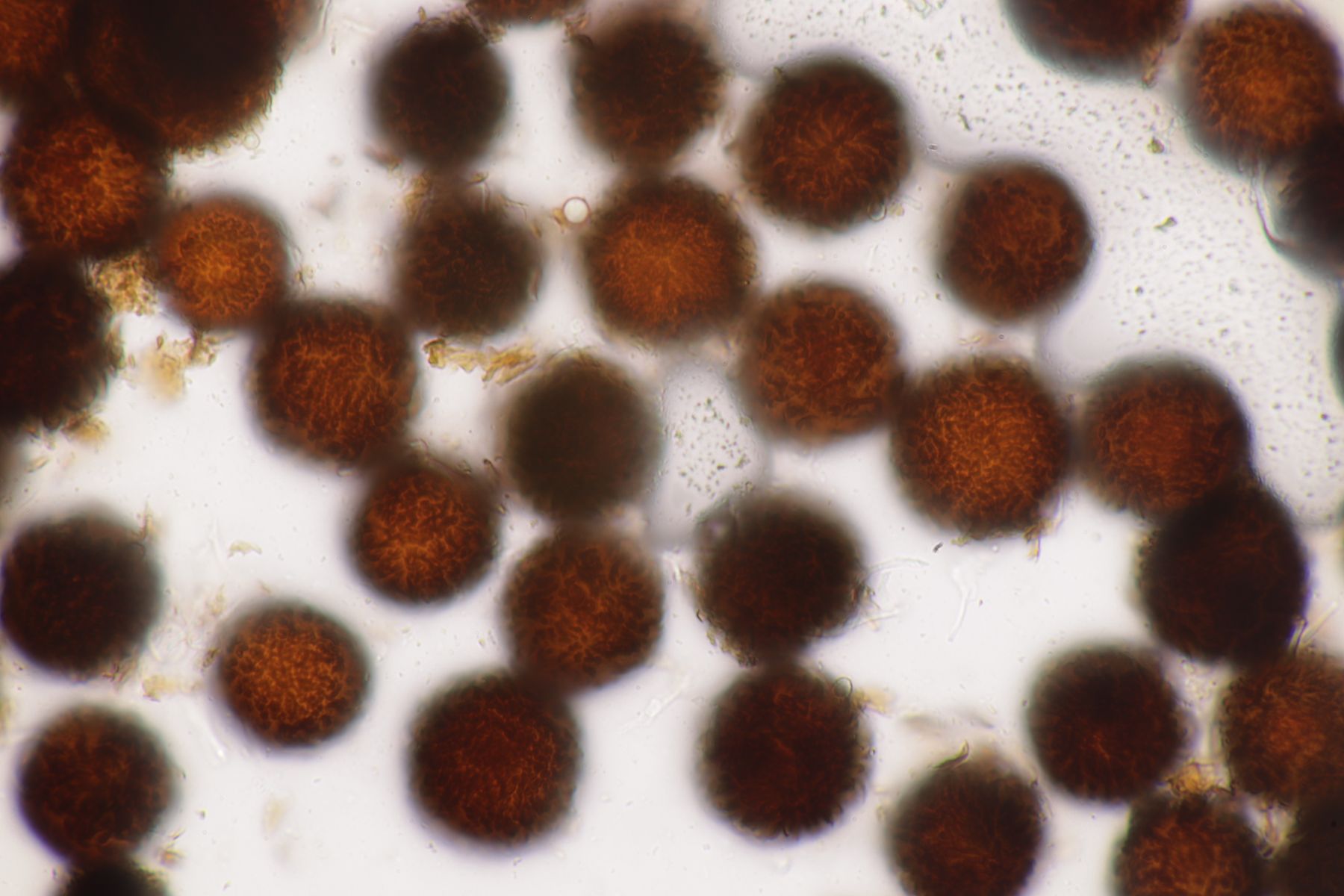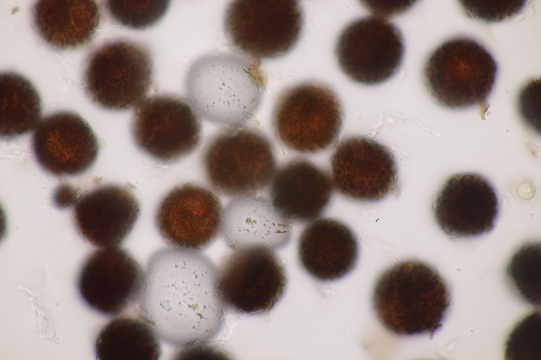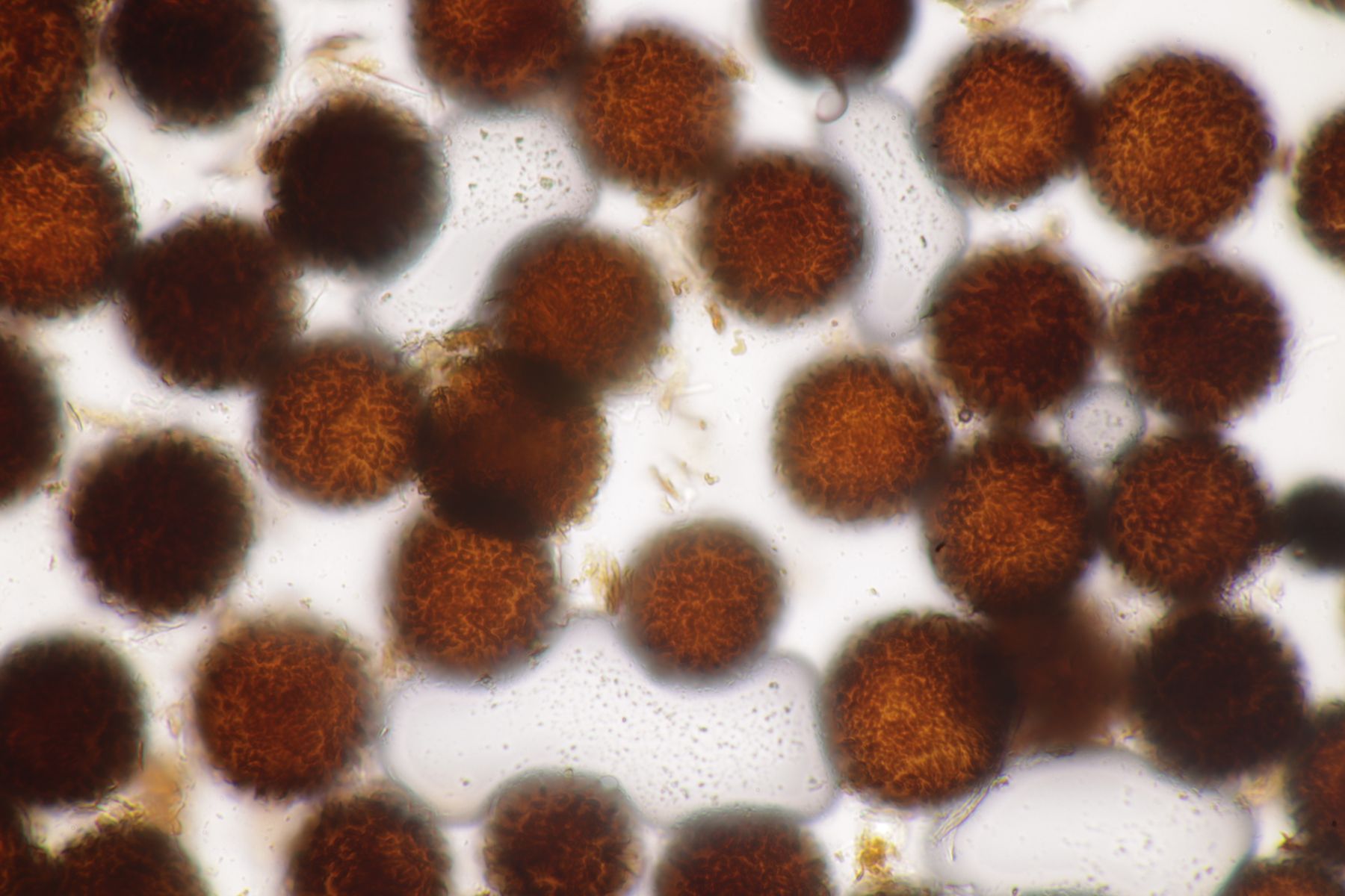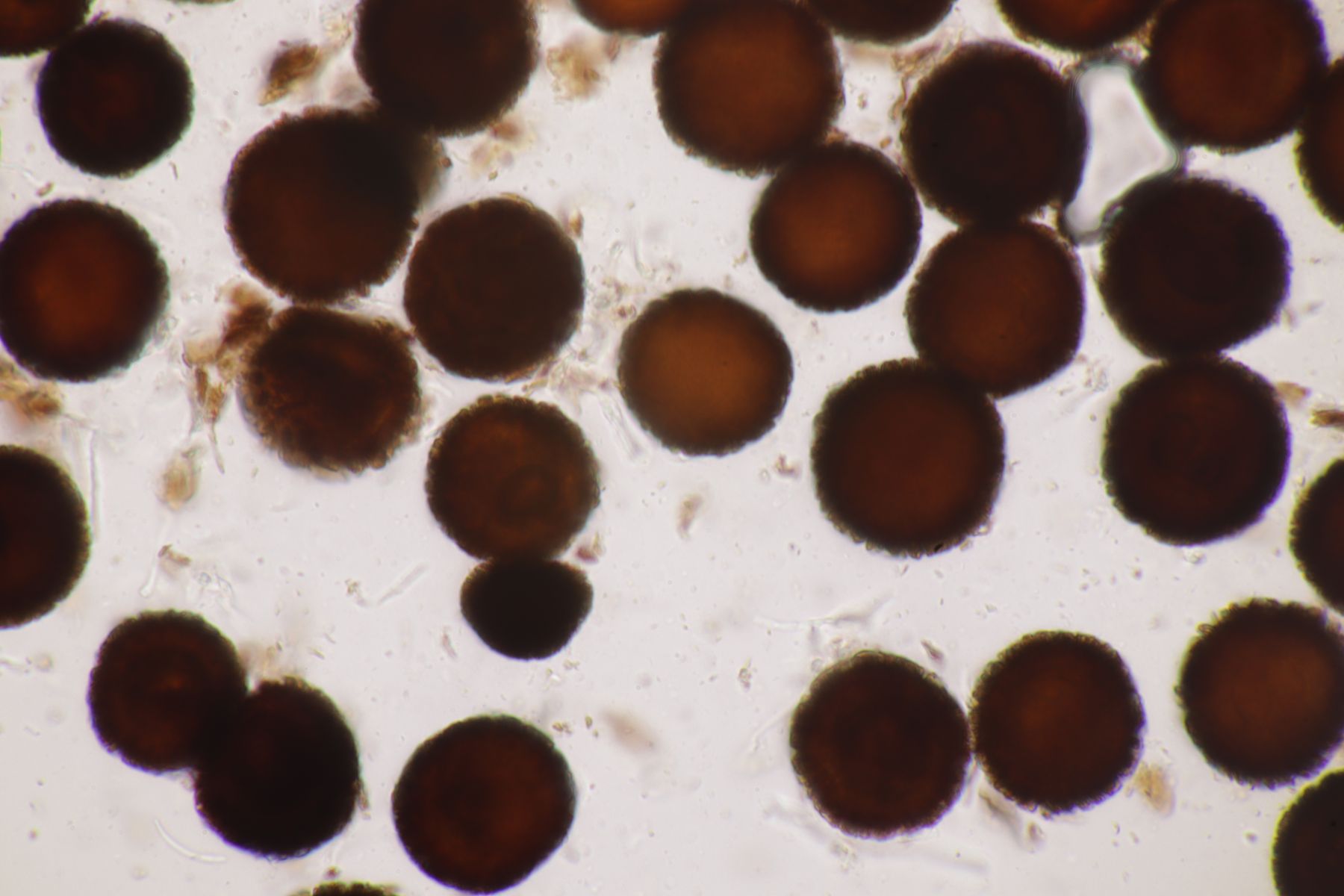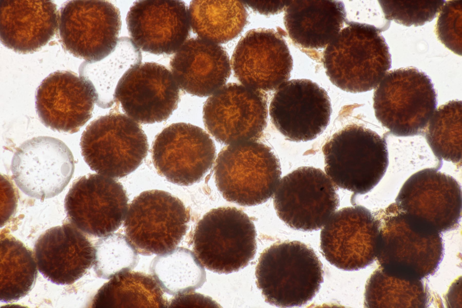 9. Eine Hirschtrüffel im sauren Fichtenforst. Schon ziemlich eingetrocknet, aber mit heller Peridie. Mit dem Sporenornament lande ich dann bei Elaphomyces granulatus