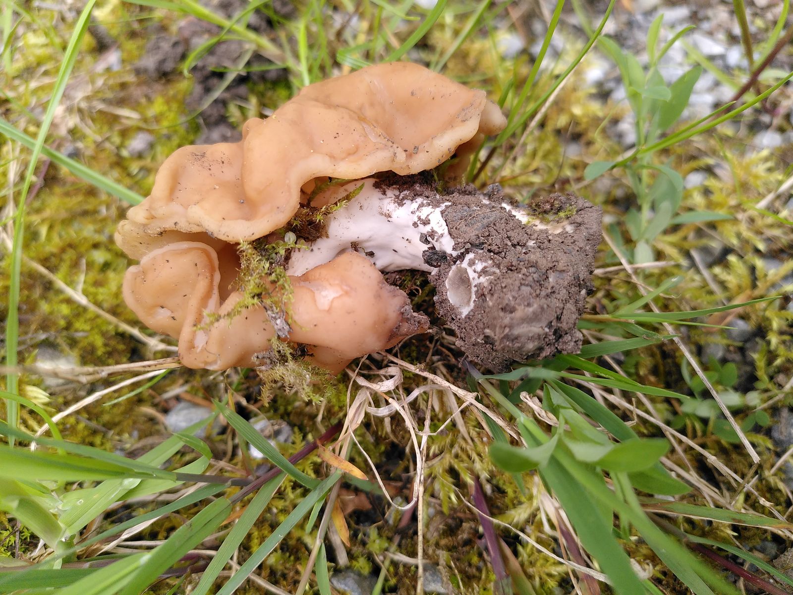 Bist du sicher dass die auf dem Boden wuchs? Oder war da vergrabenes Holz drunter? von der Farbe und dem kurzen Stiel könnt ich mir eine Gyromitra parma vorstellen.
