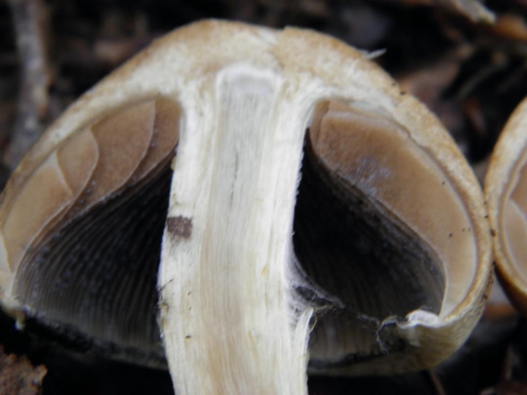 Stiel: minimall geschuppt, goldbraun, im schnitt etwas faserig. Zum Hut hin mit "haaren" bewachsen"