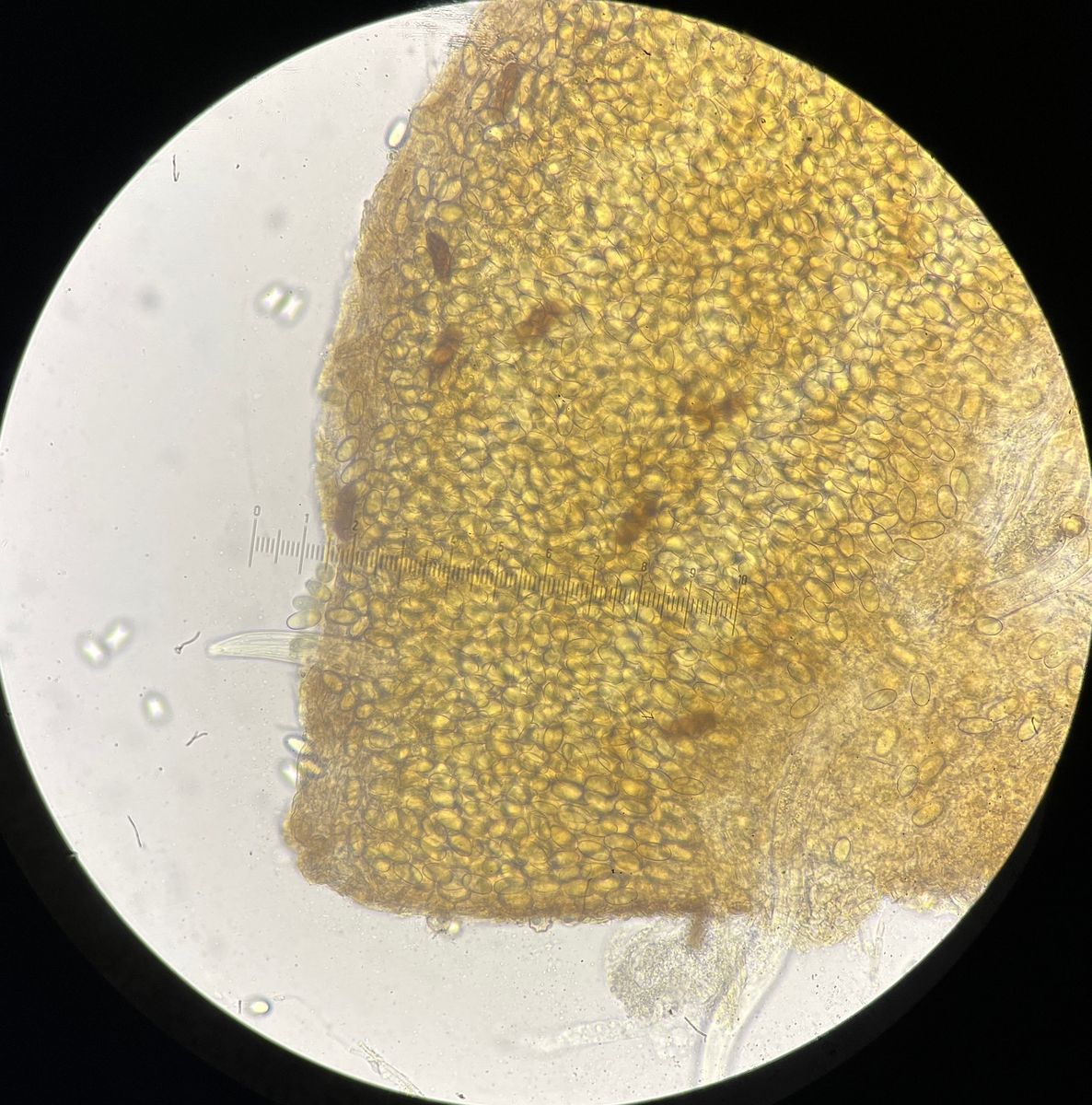 Diese Art kam mir vor kurzem vor das Objektiv, und ist mir unbekannt. Durchmesser so um 400µm, Sporen 16.5-17 x 8.5-9.5µm. Erkennt den jemand?