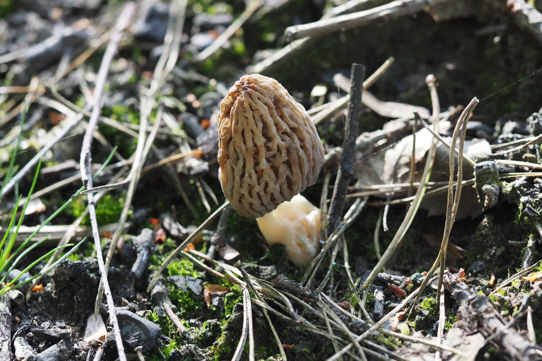 Da stand sie nun endlich einsam und allein in den Brandresten, meine erste Morchel.