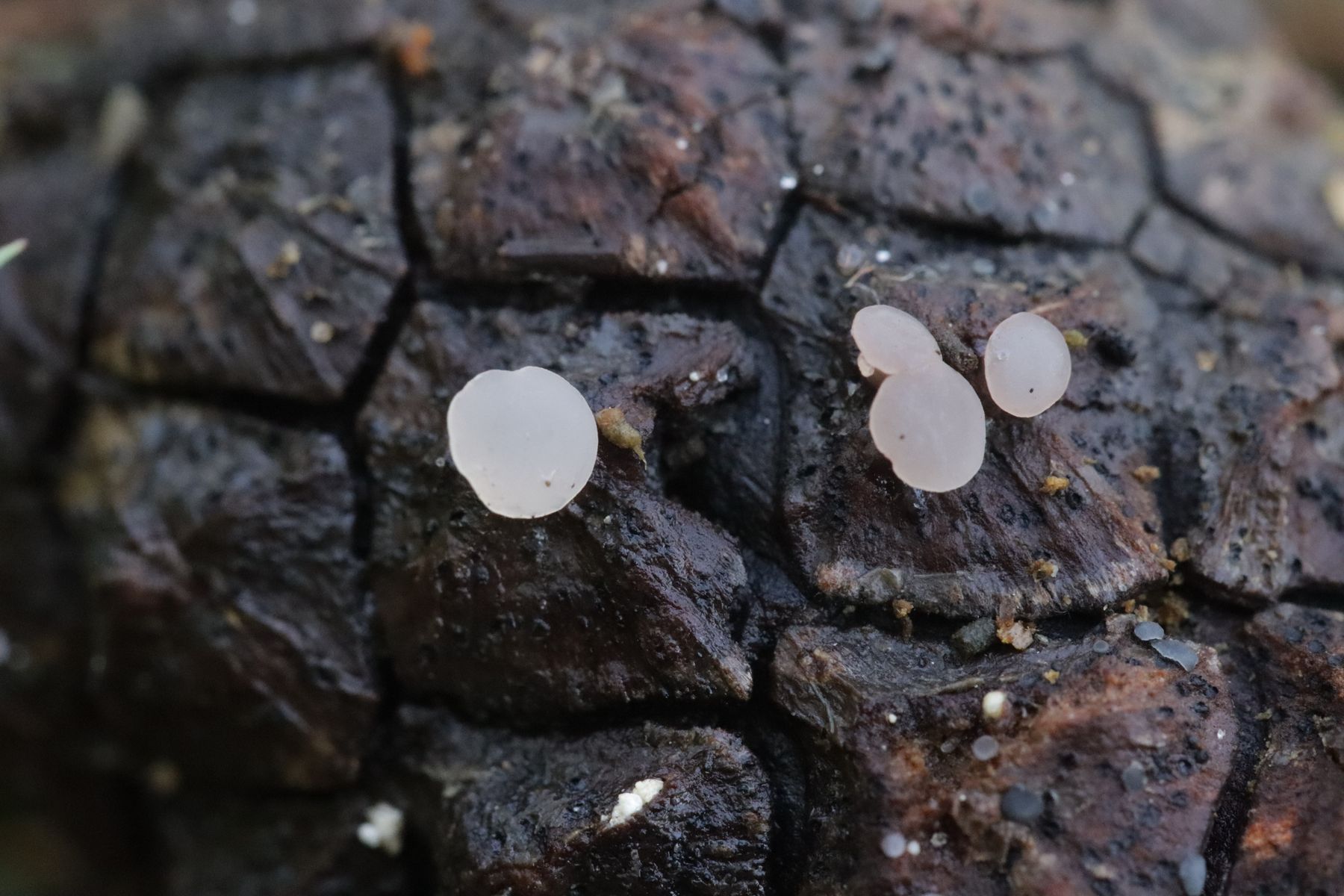 10. Cudoniella rubicunda an Kiefernzapfen