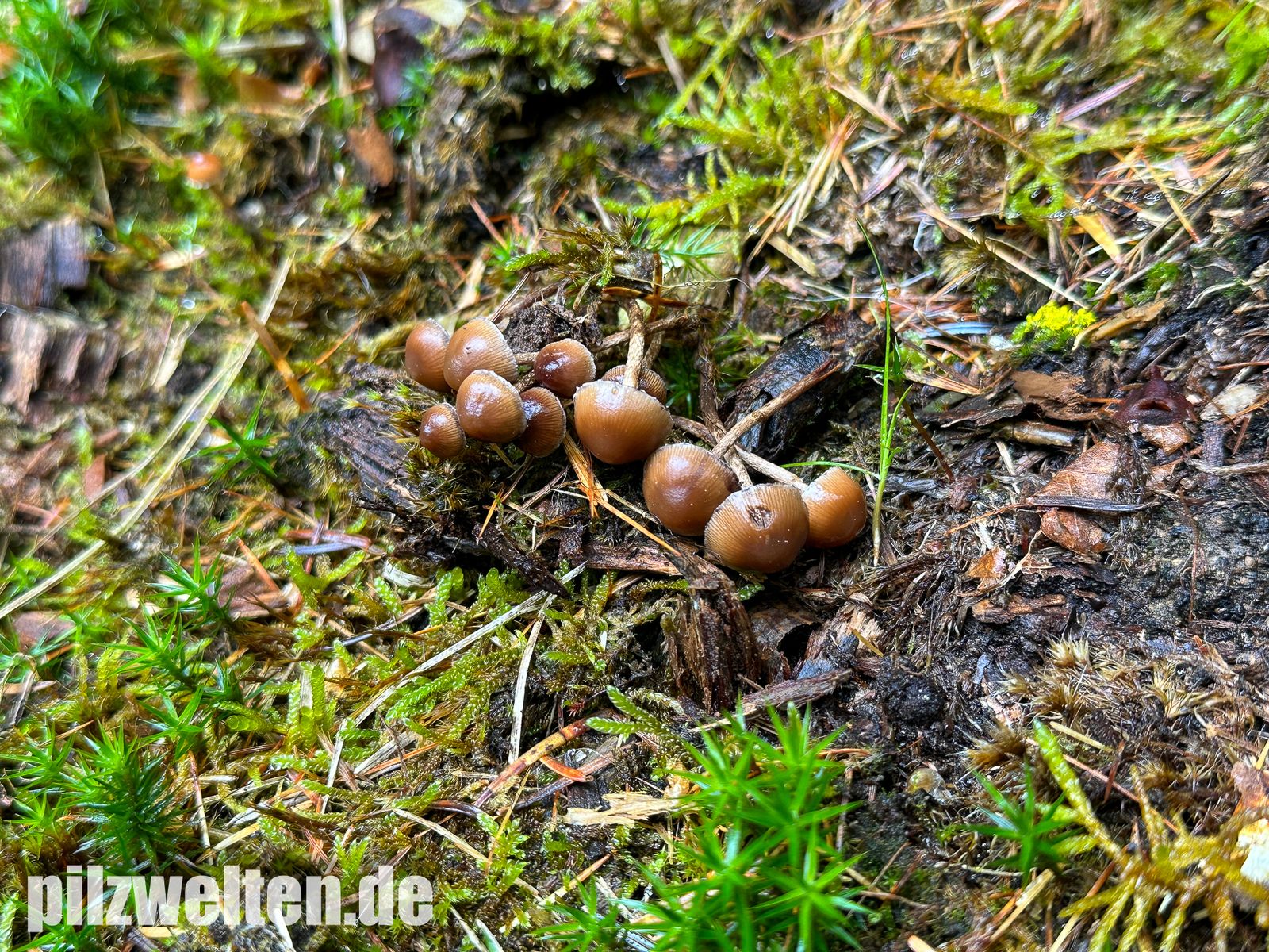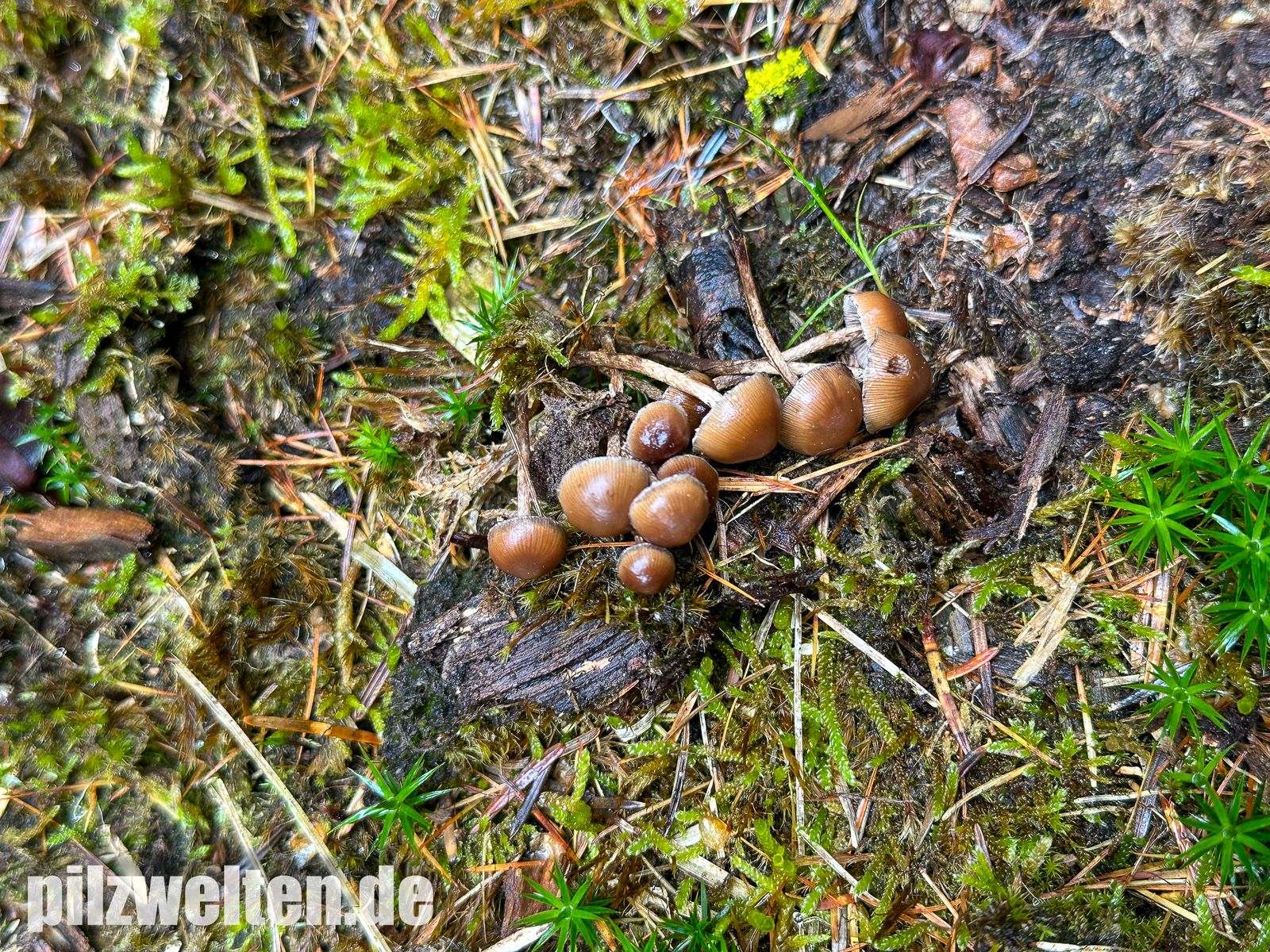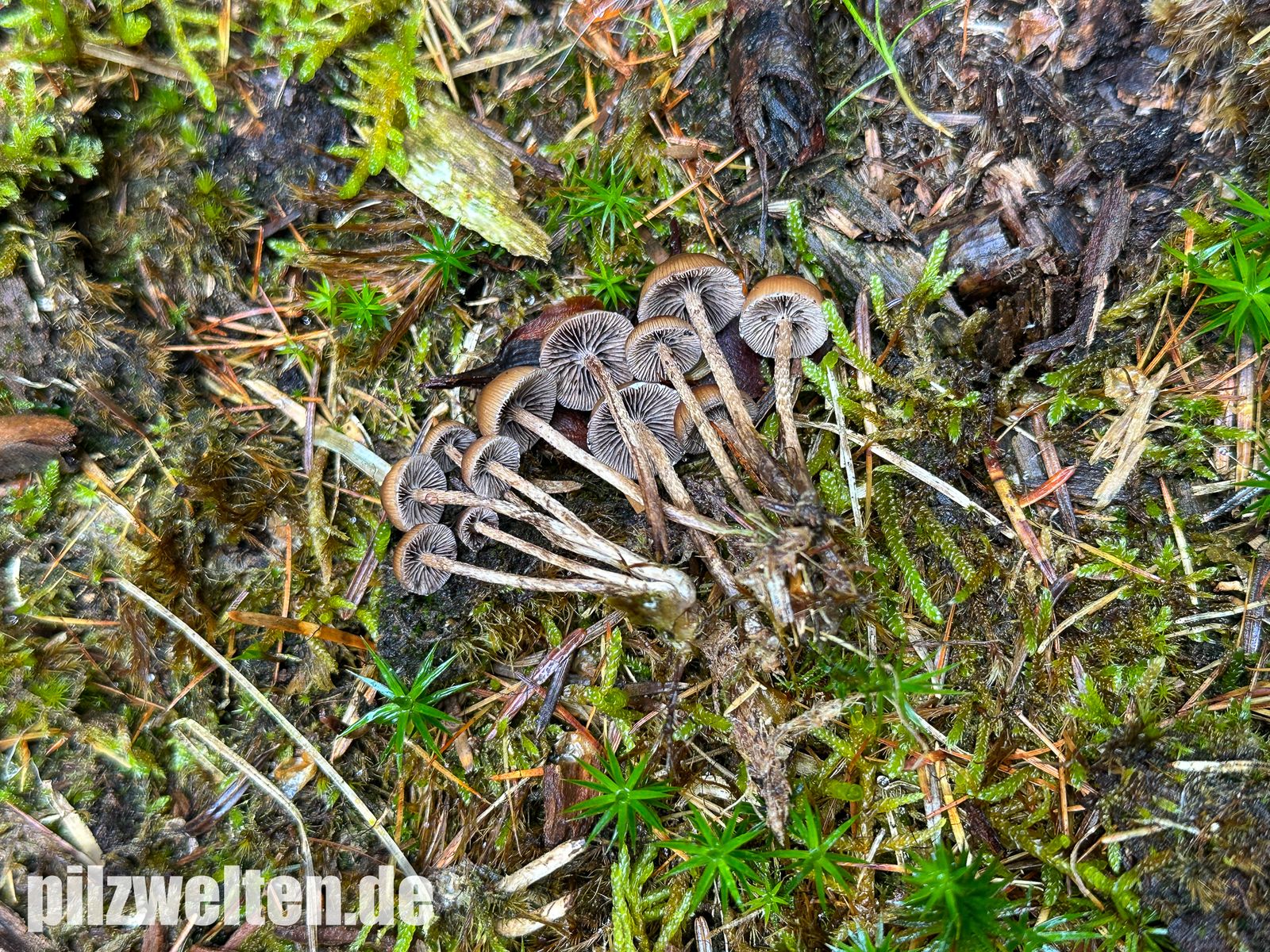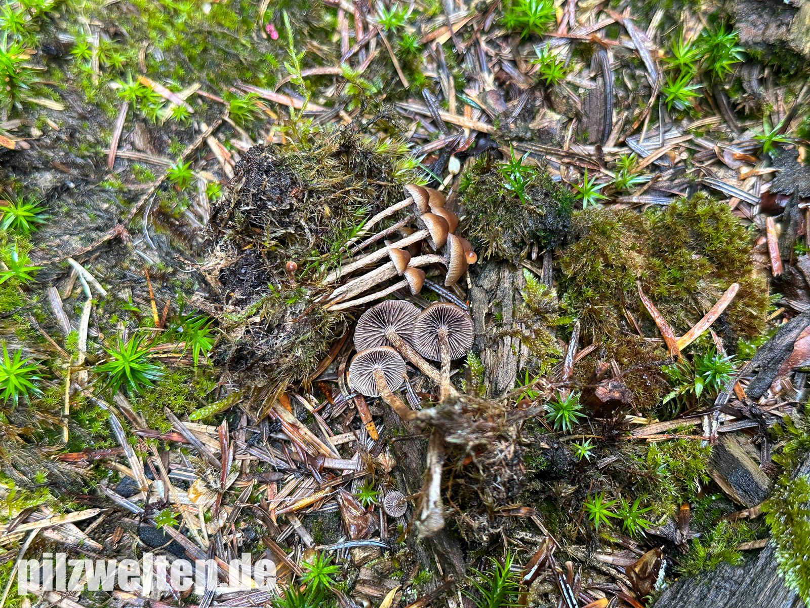 Zufallsfund im Nadelwald auf bemoosten Holzabfällen - vielleicht Psilocybe crobula?