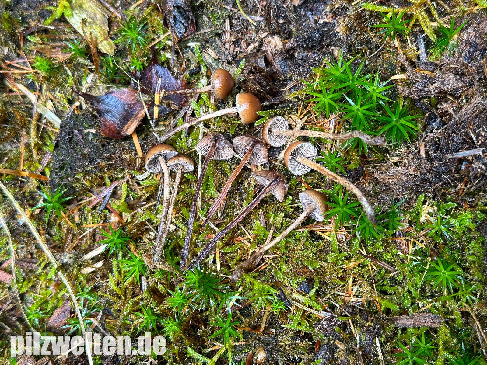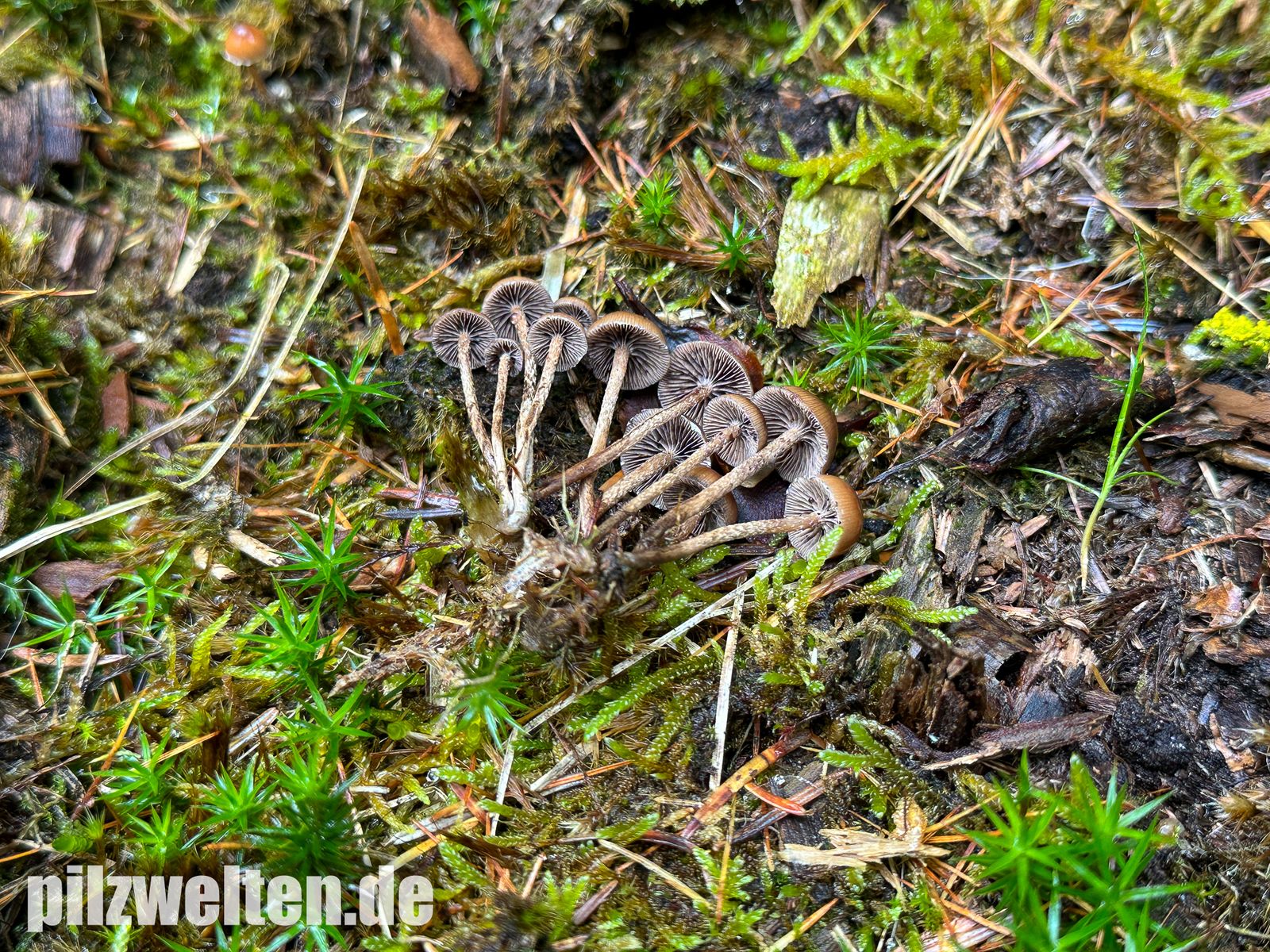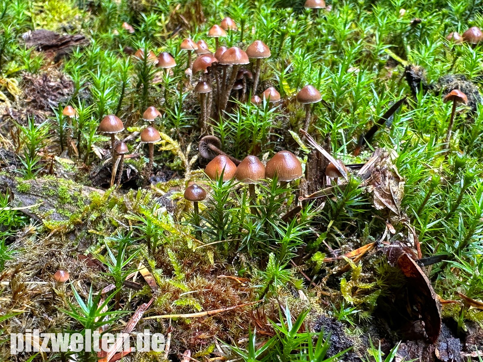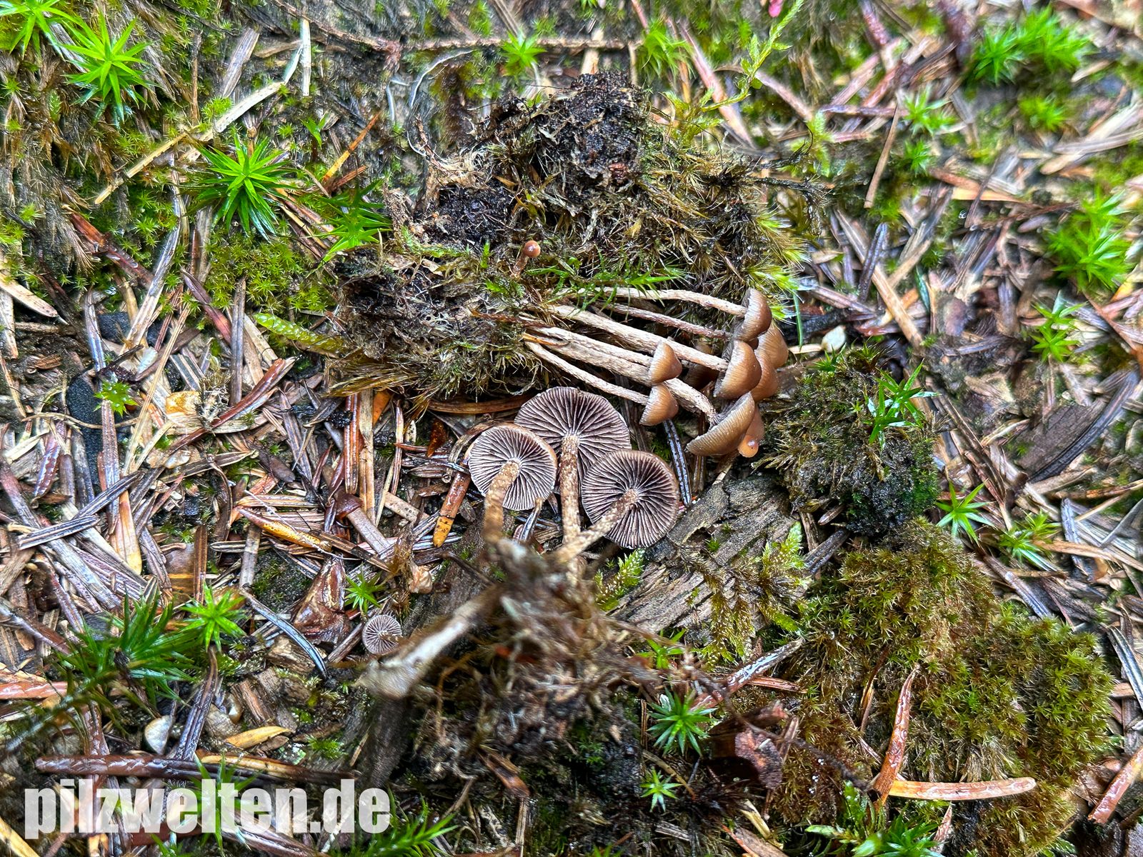 Zufallsfund im Nadelwald auf bemoosten Holzabfällen - vielleicht Psilocybe crobula?