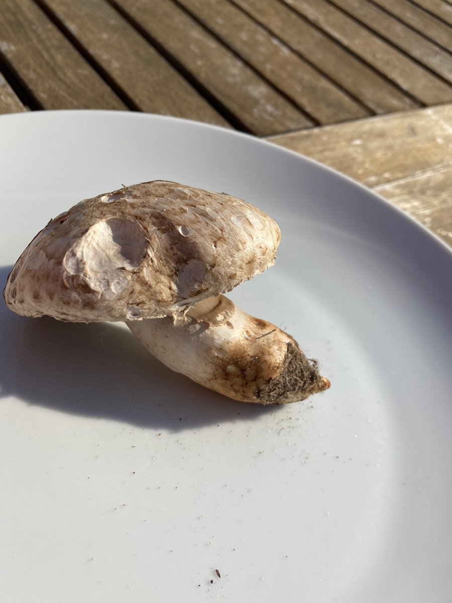 Ich weiß, Agaricus ist ohne Micro immer schwer. Aber ich tendiere mit einigen Zweifels zu A. Campestris. Ebenfalls im Rennen war aufgrund der Küstennähe auch A. fissuratus, aber da ist mir der Hut nicht dunkel und schuppig genug für, wenn Augustus hierfür der Benchmark ist.