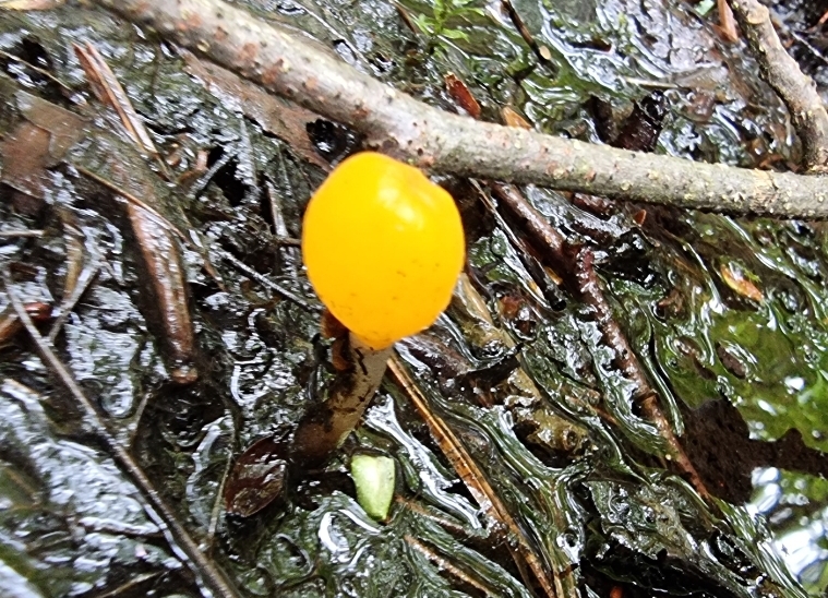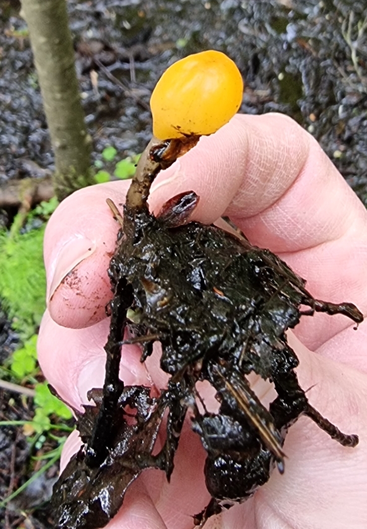 Habe im Auwald an einer Moorartigen Stelle diesen optisch sehr schön und skurril aussehenden Pilz gefunden. Er wuchs aus einer Wasserpfütze heraus und leuchtete mir entgegen 🙂