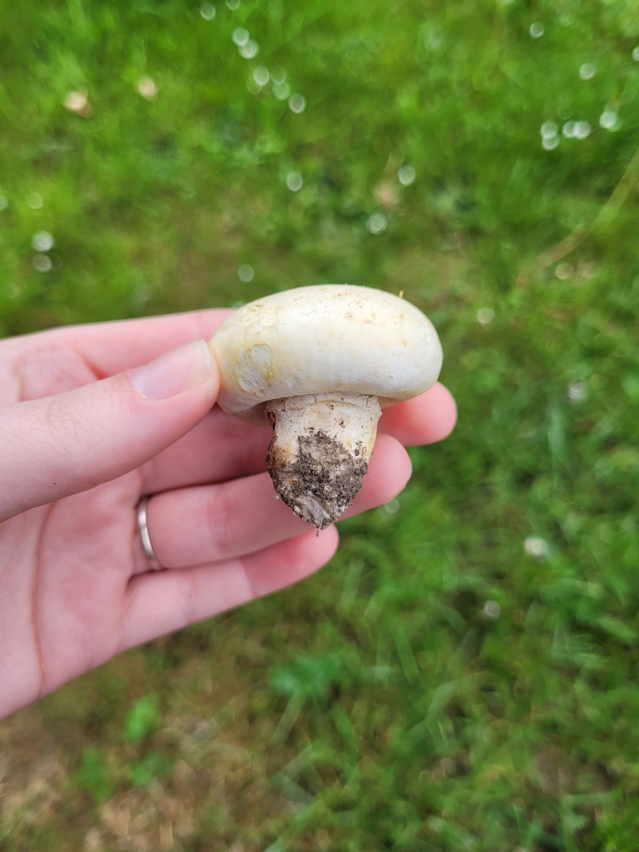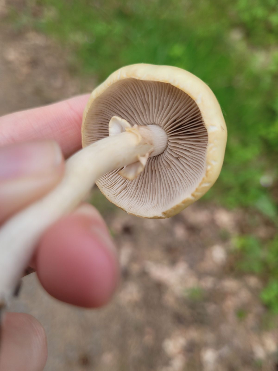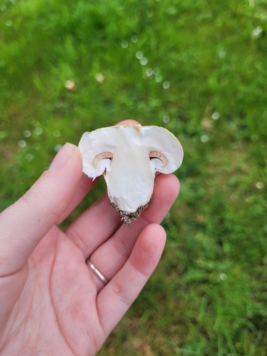 Pilz 3, wohl definitiv ein Champions, roch pilzig angenehm, gefunden am furztrockenen Wegrand in sandiger Erde. Hutoberfläche war vergilbt aber das Fleisch oder die Stielbasis gar nicht.