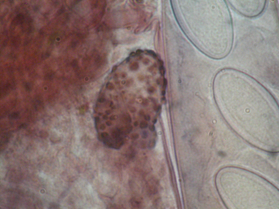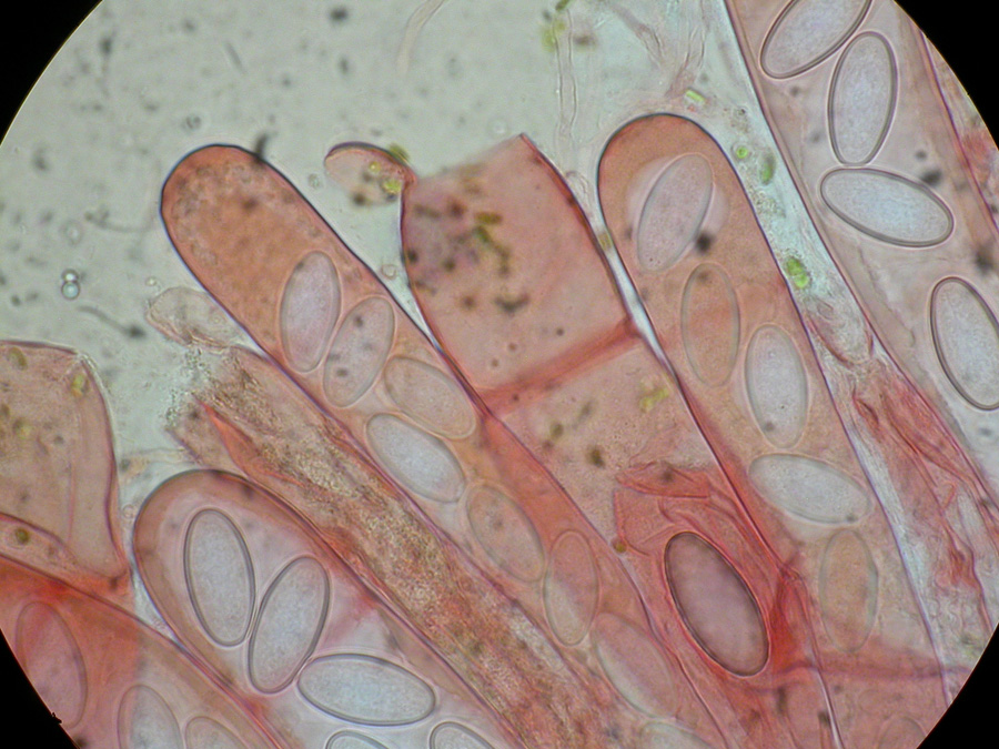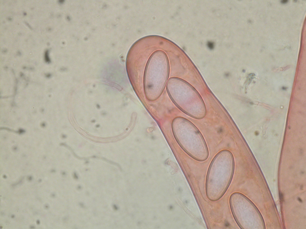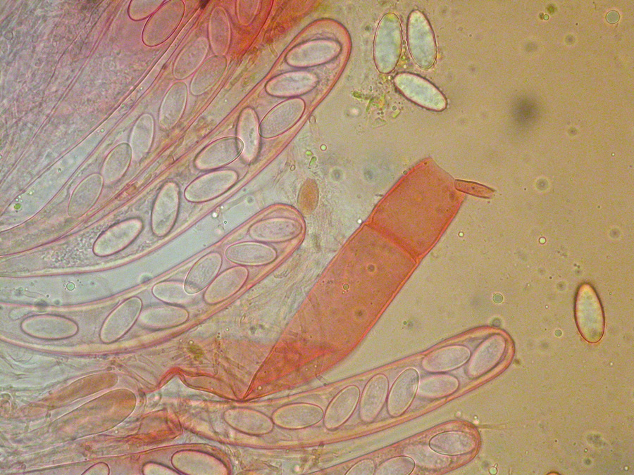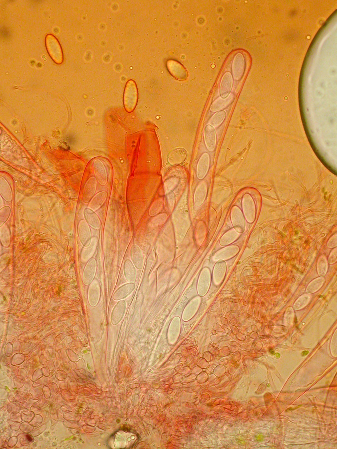 Asci bis 200 µm lang und über 20 µm breit. Unter der Ascusspitze eine in Kongorot sich deutlich anfärbende Ringzone, an der der Ascus auch etwas verengt ist. Ascusbasis mit Haken.