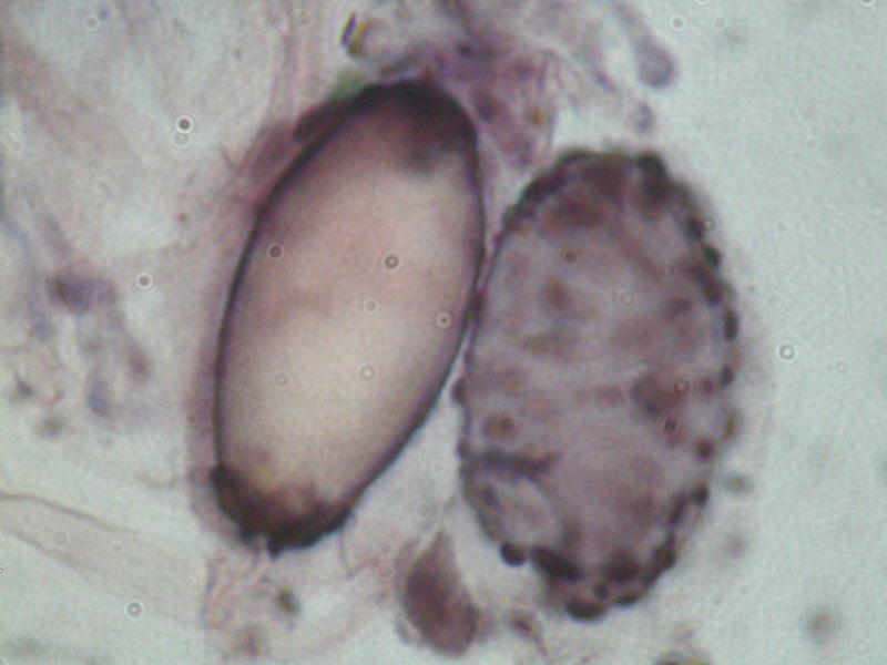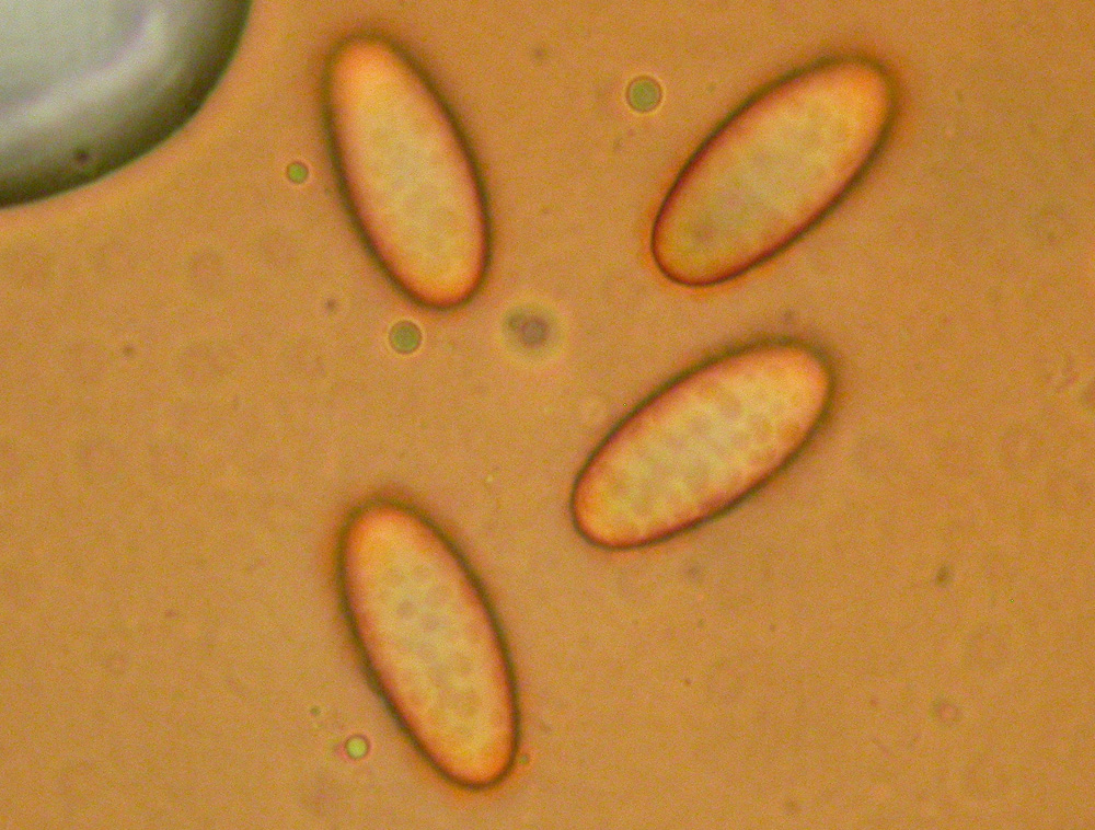 Ascosporen vor allem jung spindelig und dickwandig. Reif mit groben Warzen besetzt, die sich beim Quetschen des Präparates leider von der Spore gelöst haben. Größe: 24-25 x 11-12,5 µm.