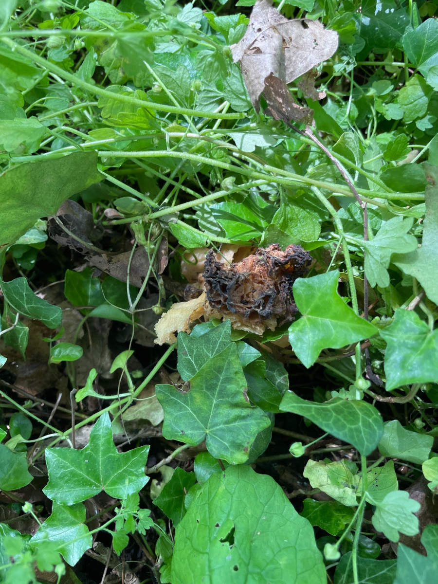 Die Morchel selbst muss mal ein stattliches Exemplar gewesen sein, nur war sie entweder durch den Regen oder die Schnecken ziemlich zugrunde gerichtet! Meint ihr nÀchstes Jahr ist da mehr zu holen, nachdem Motto wo sich eine findet gibt es auch mehr ?!