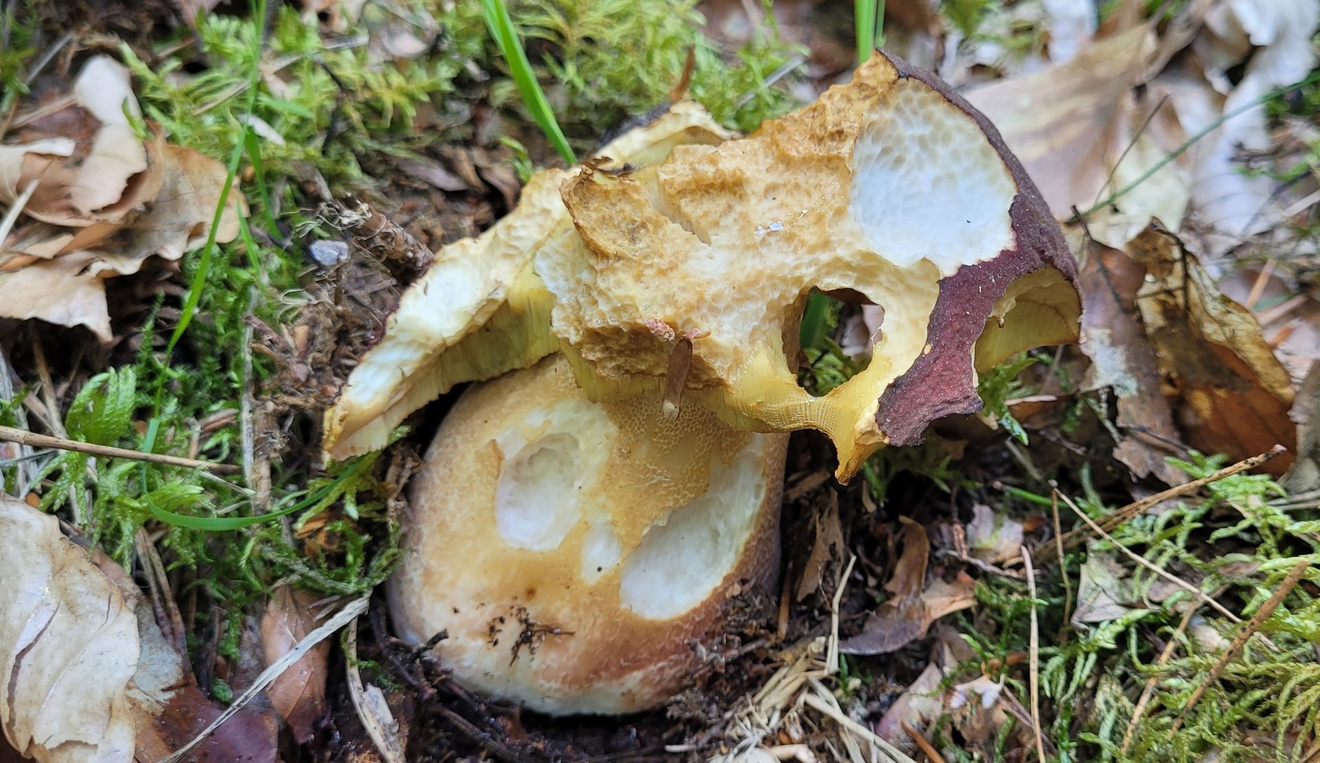 2. Sommersteinpilze (Boletus aestivalis) unter Eichen, verschiedene Myzele, verschiedene Standorte. Alle komplett vermadet, schon wenn nur die Hüte zu sehen waren. Die dürfen dableiben, groß werden und aussporen, wenn sie nicht vorher schon ratzeputze von den Nahrungskonkurrenten verspeist sind.