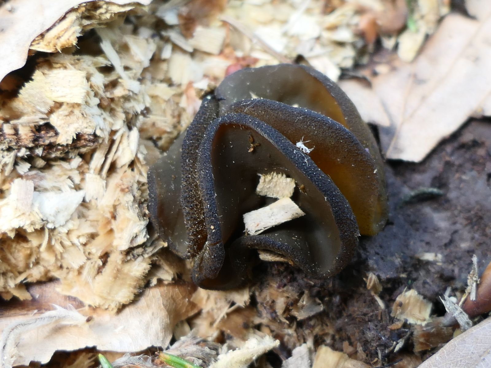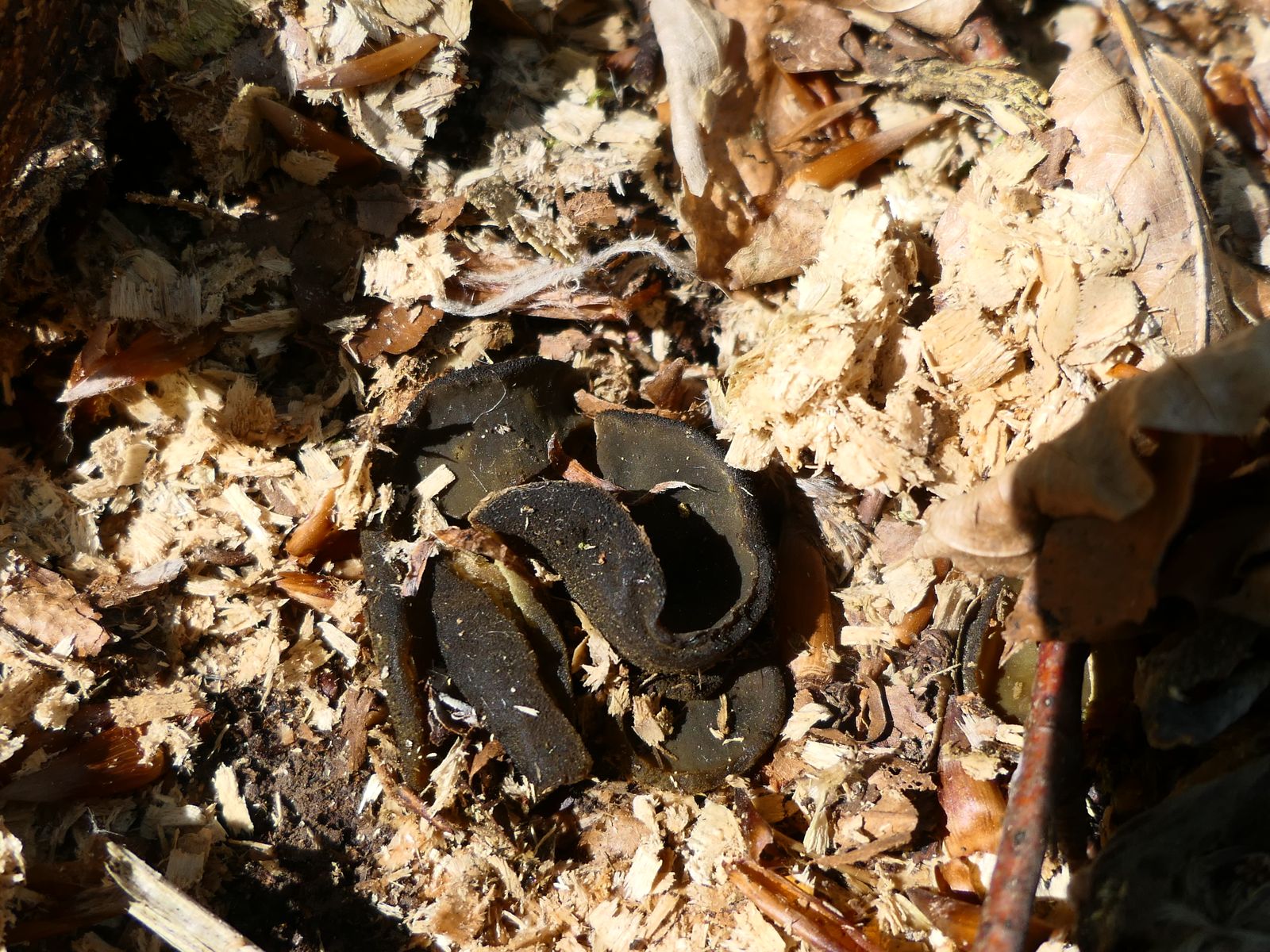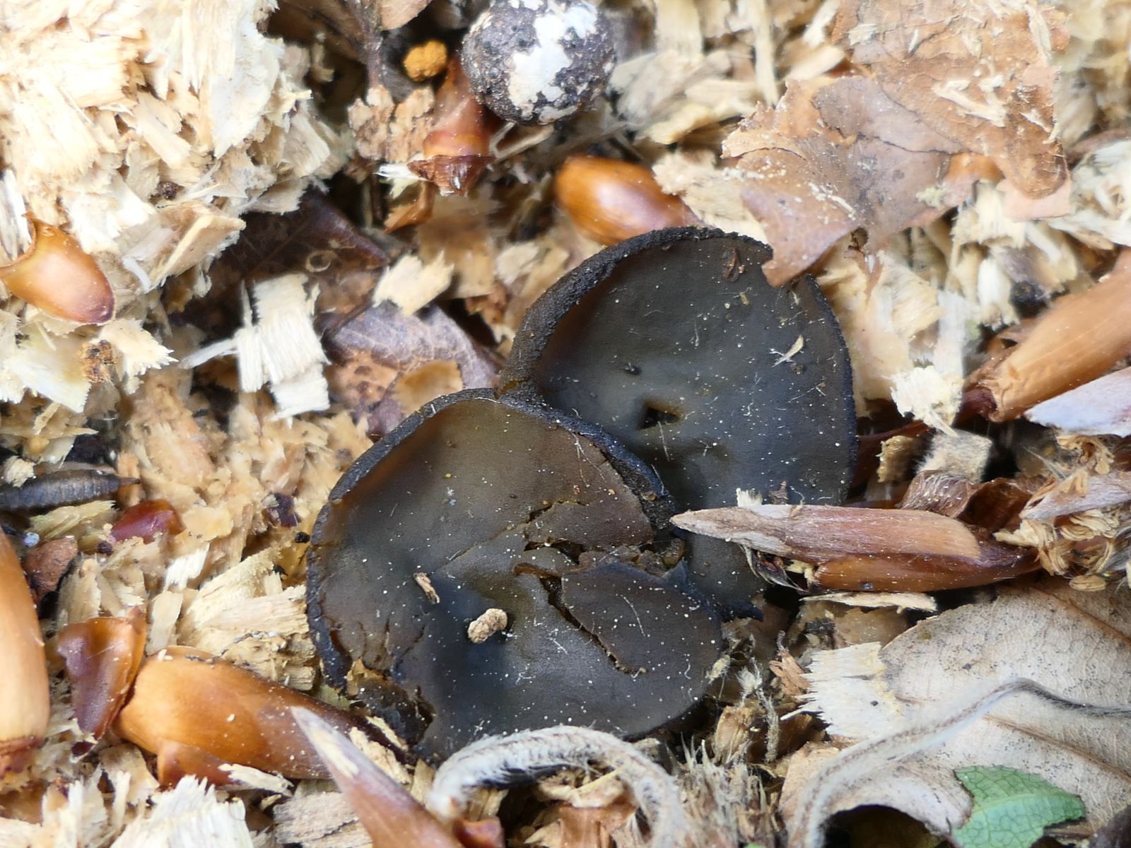 Beim Sichten von Fotos ist mir eine weitere, unscheinbare Discomyceten-Art aufgefallen, die ich vor Ort gar nicht bemerkt hatte (vgl. Peziza-Arten auf Holzhäcksel).