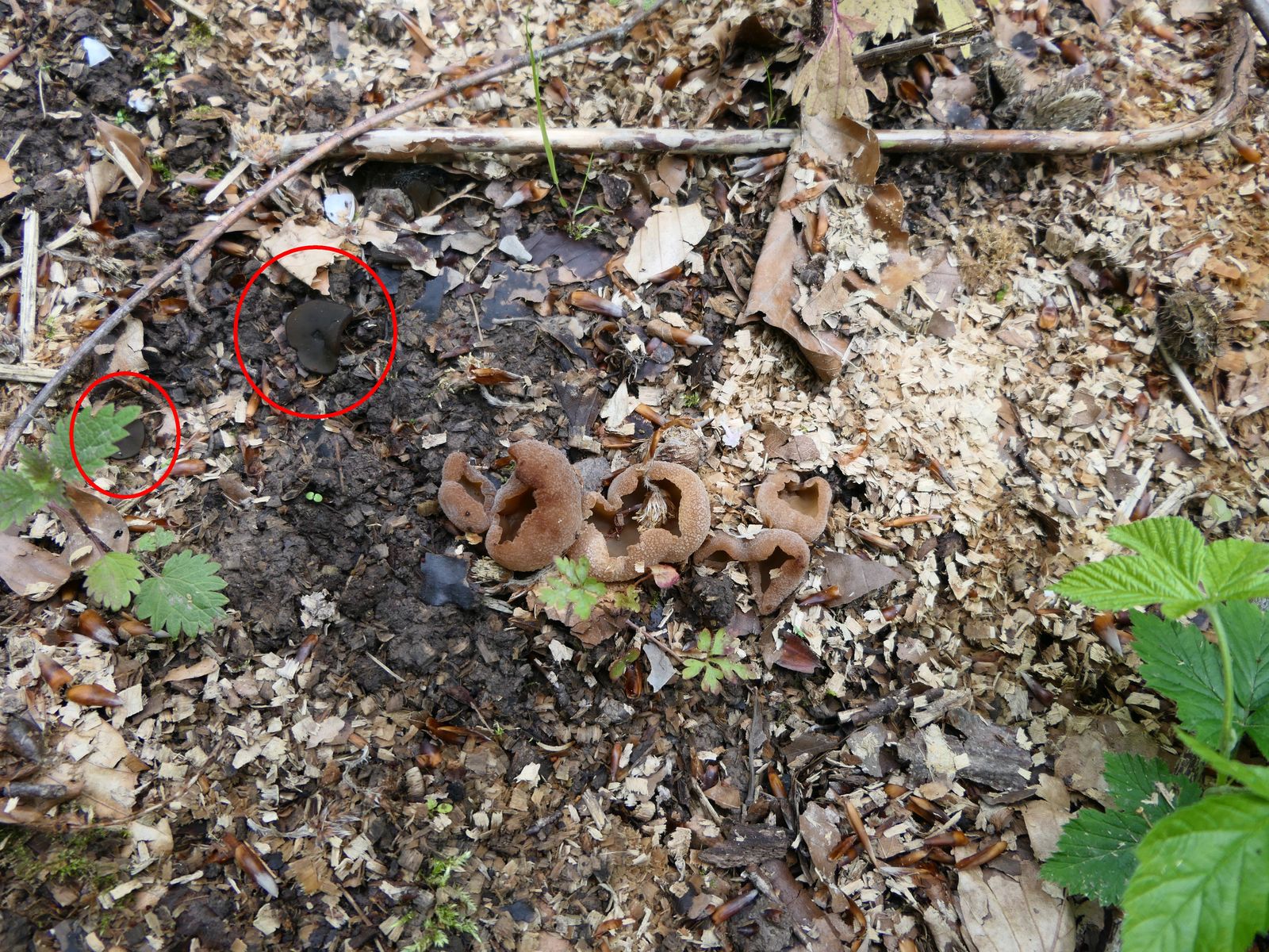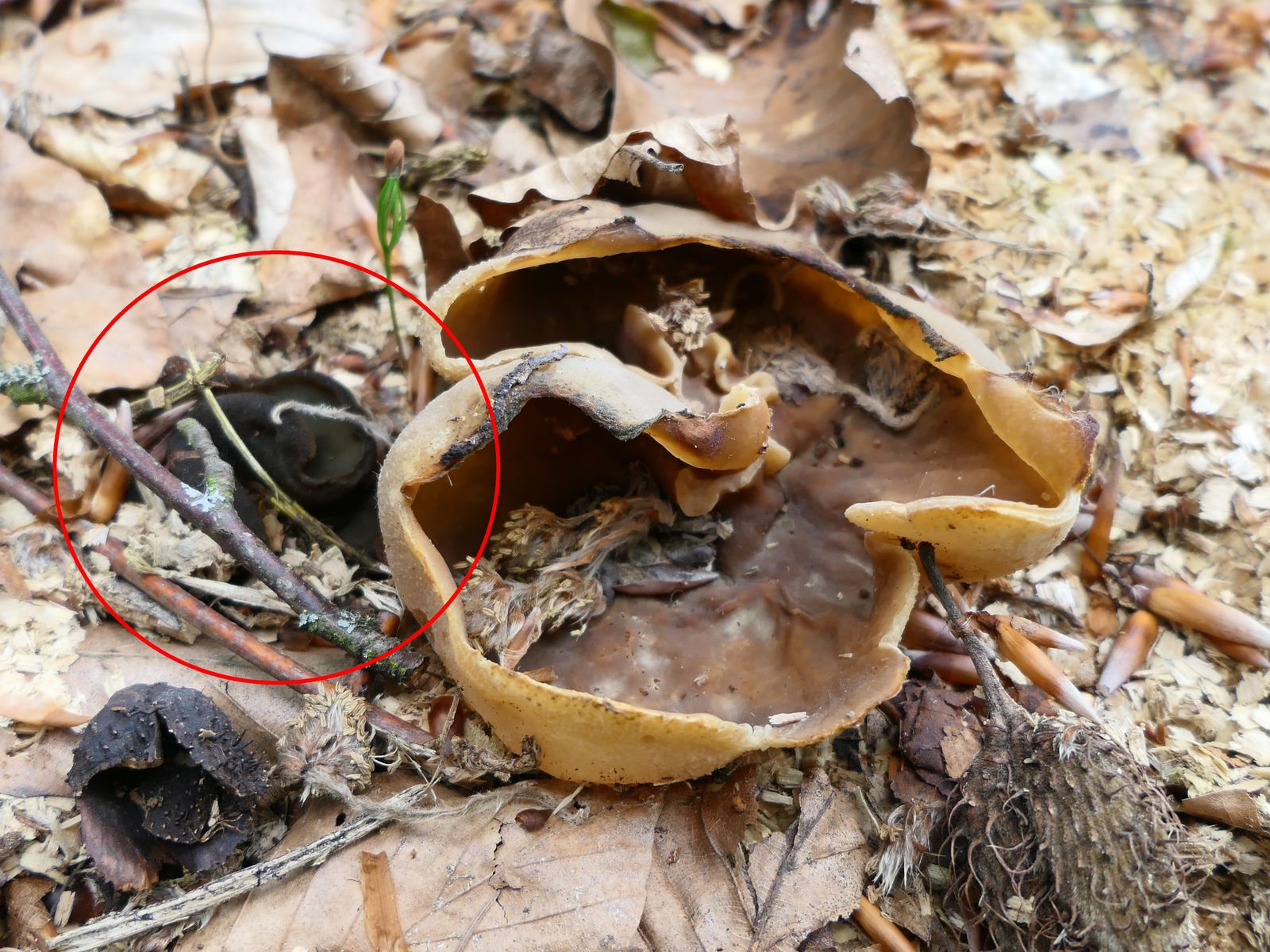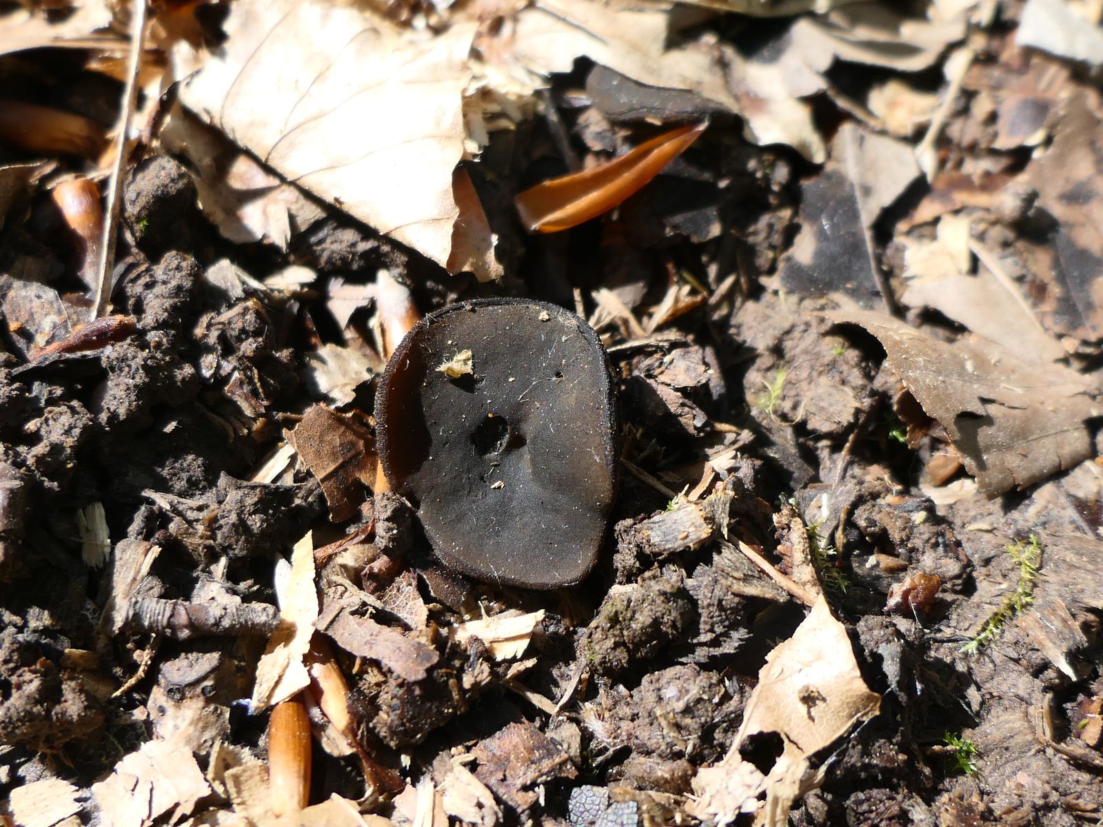 Beim Sichten von Fotos ist mir eine weitere, unscheinbare Discomyceten-Art aufgefallen, die ich vor Ort gar nicht bemerkt hatte (vgl. Peziza-Arten auf Holzhäcksel).
