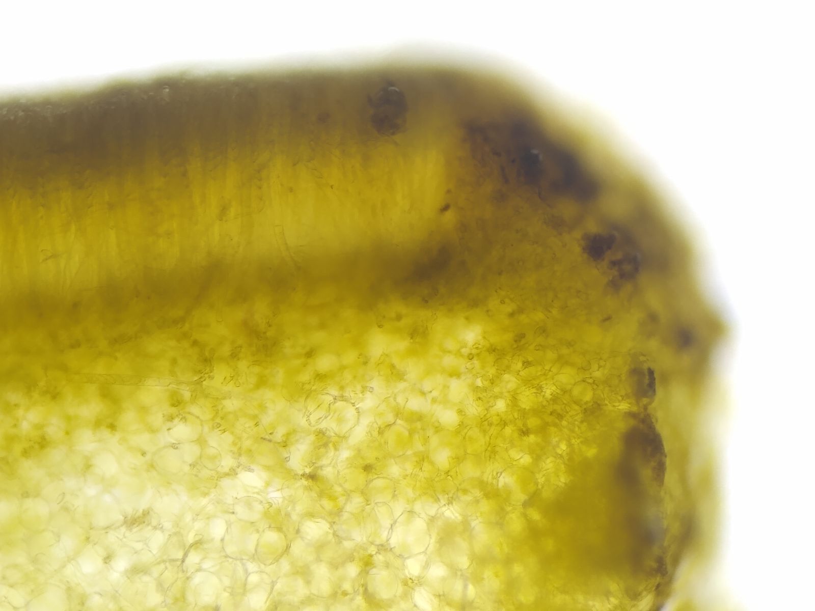 - obere Hälfte blau in Lugol (amyloid), untere Hälfte rotbraun in Lugol (dextrinoid)