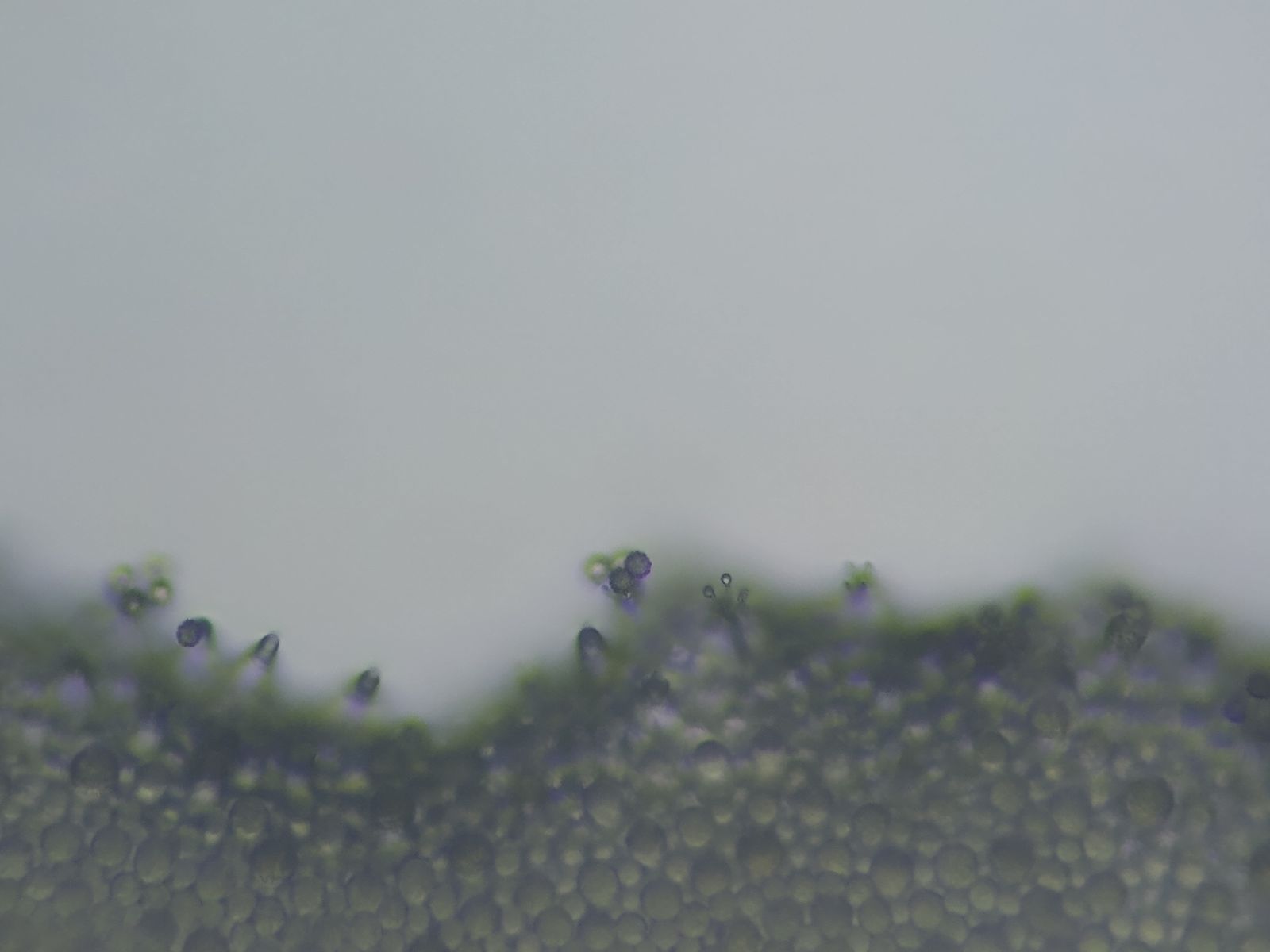 Der Tipp mit dem Deckglas auf das Sporenhäufchen ist nicht schlecht! Dann kommt es zu keinem Schattenwurf durch hochstehende Bereiche. Ich will das nächsten Mal versuchen.
