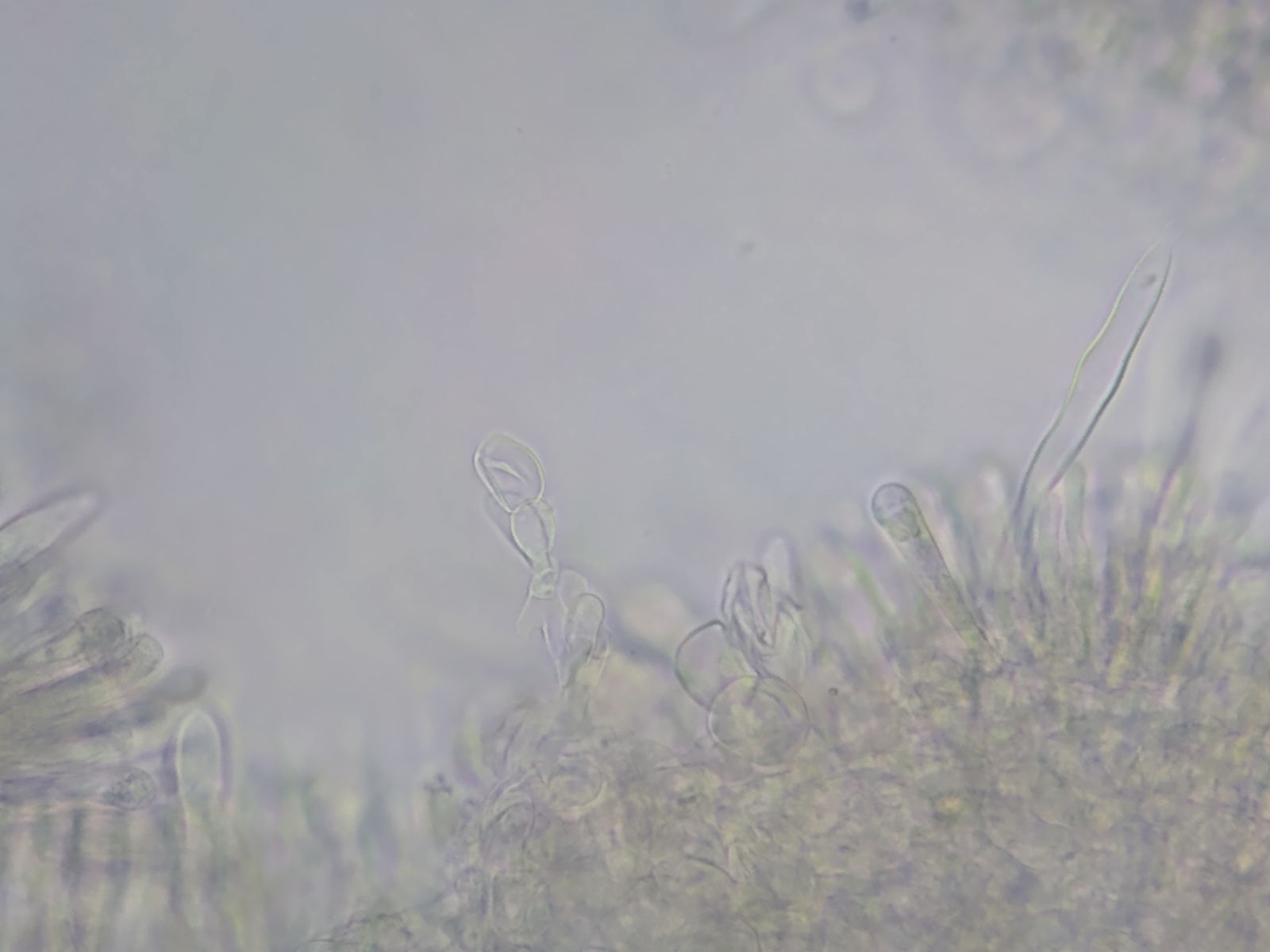 Ja, die Huthaut hatte ich tatsächlich kontrolliert, aber halt nicht in Kongorot angefärbt. Die Pileozystiden hatte ich fotografiert, da ich diesen Typus noch nicht gesehen hatte und tatsächlich für komische Hyphenenden hielt. Hätte ich geahnt, dass die Hyphenenden interessant sind, hätte ich natürlich mehr auf die anderen Strukturen geachtet.