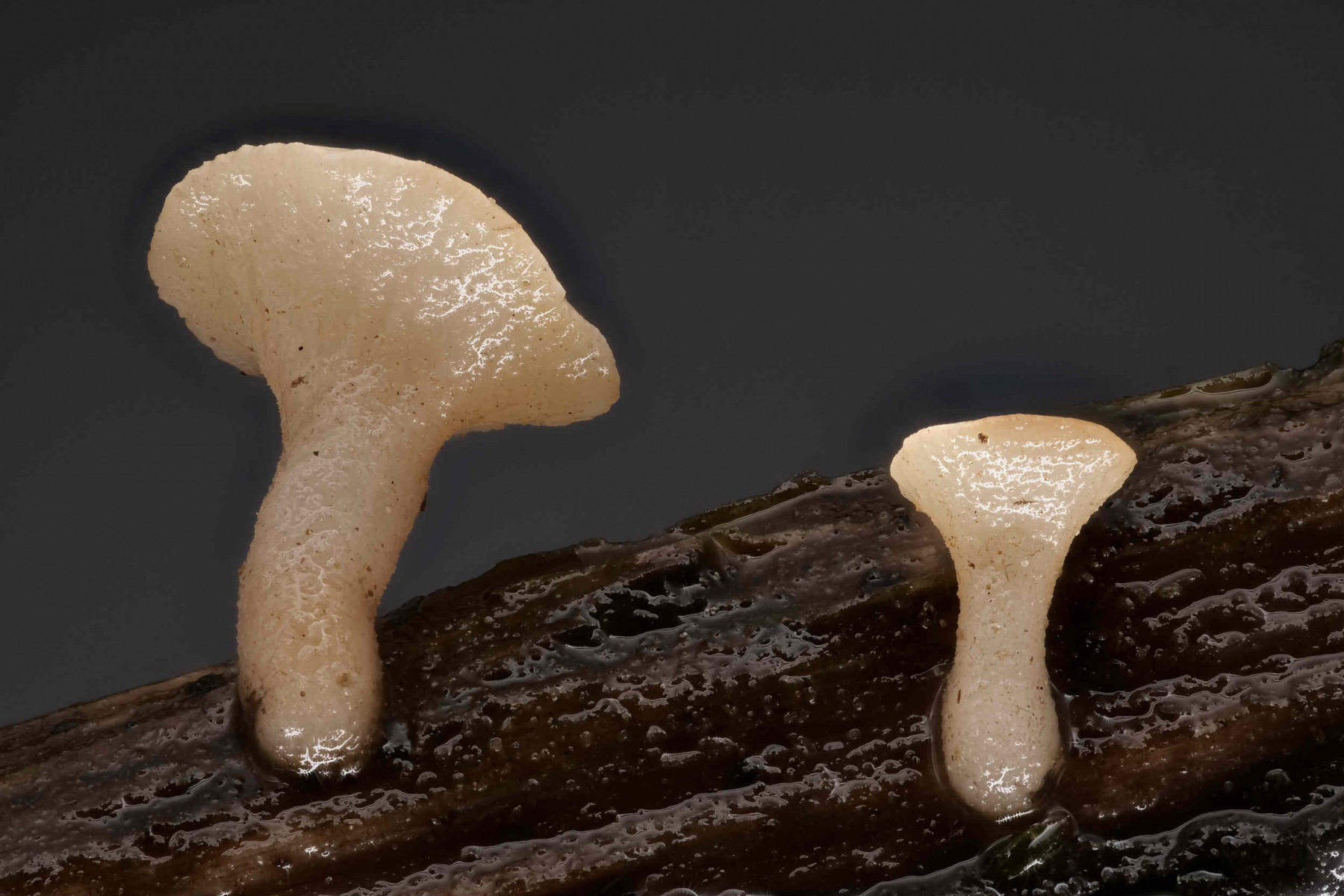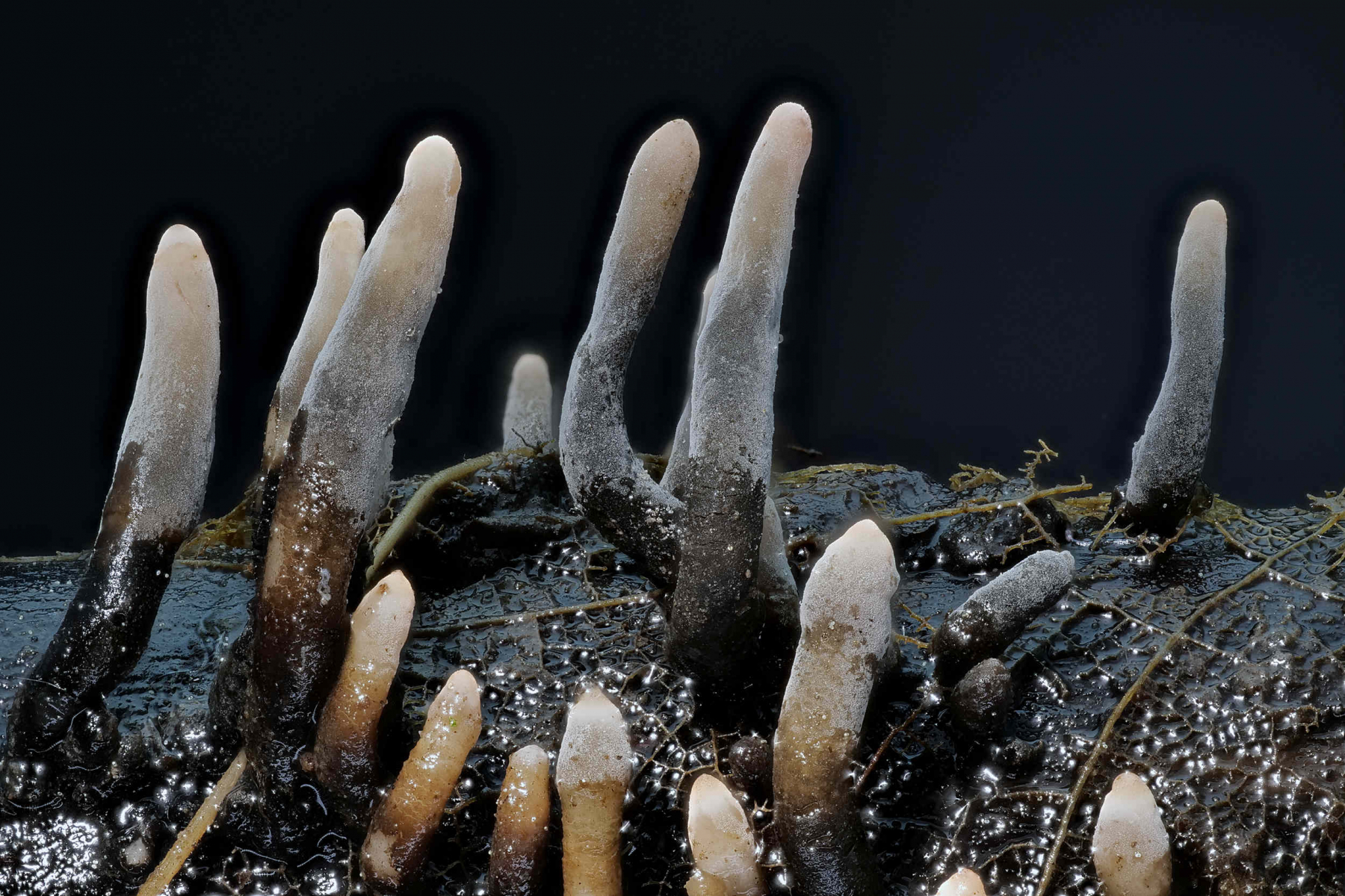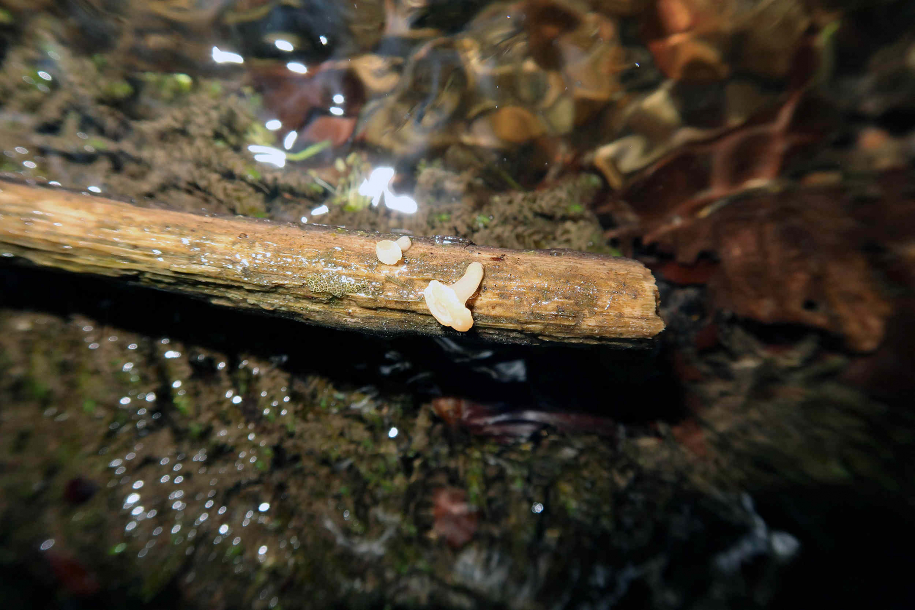 Pilze, welche über Wasser wachsen, sind bräunlich, Pilze unter Wasser sind weiß. Das sieht man später in den Bildern.