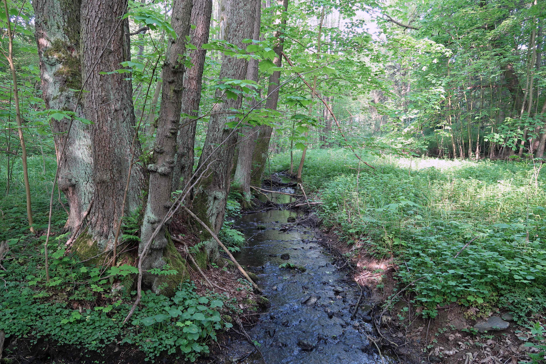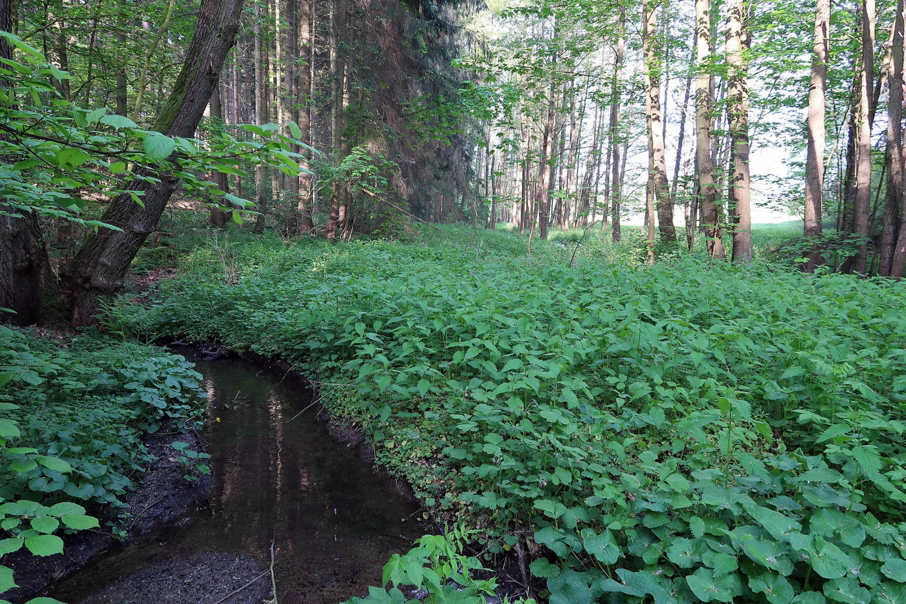 Buchenwälder sind hier rar, aber echt. Bäche sind schon eher da. Und Sumpfgebiete mit langsam fließenden Gewässern auch.
