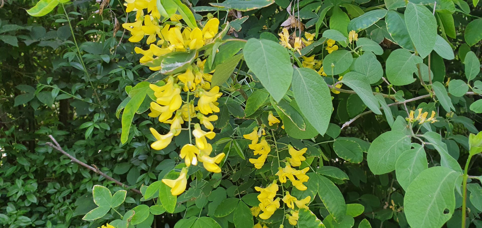 4. viele wunderschöne gelbe Blüten, ich denke Goldregen. Stark giftig, insbesondere die Samen.
