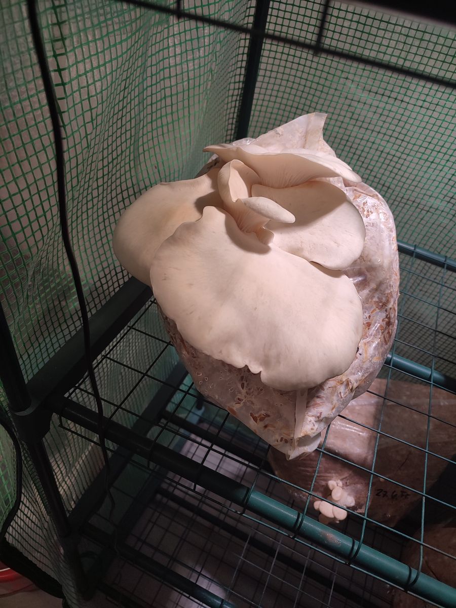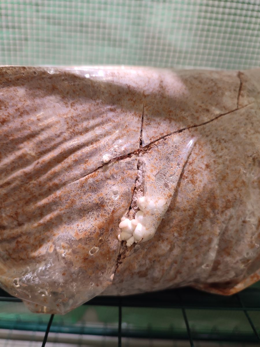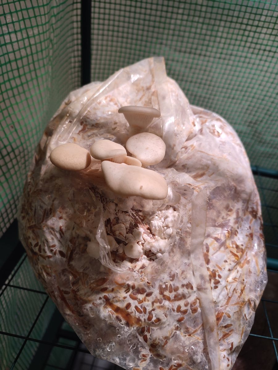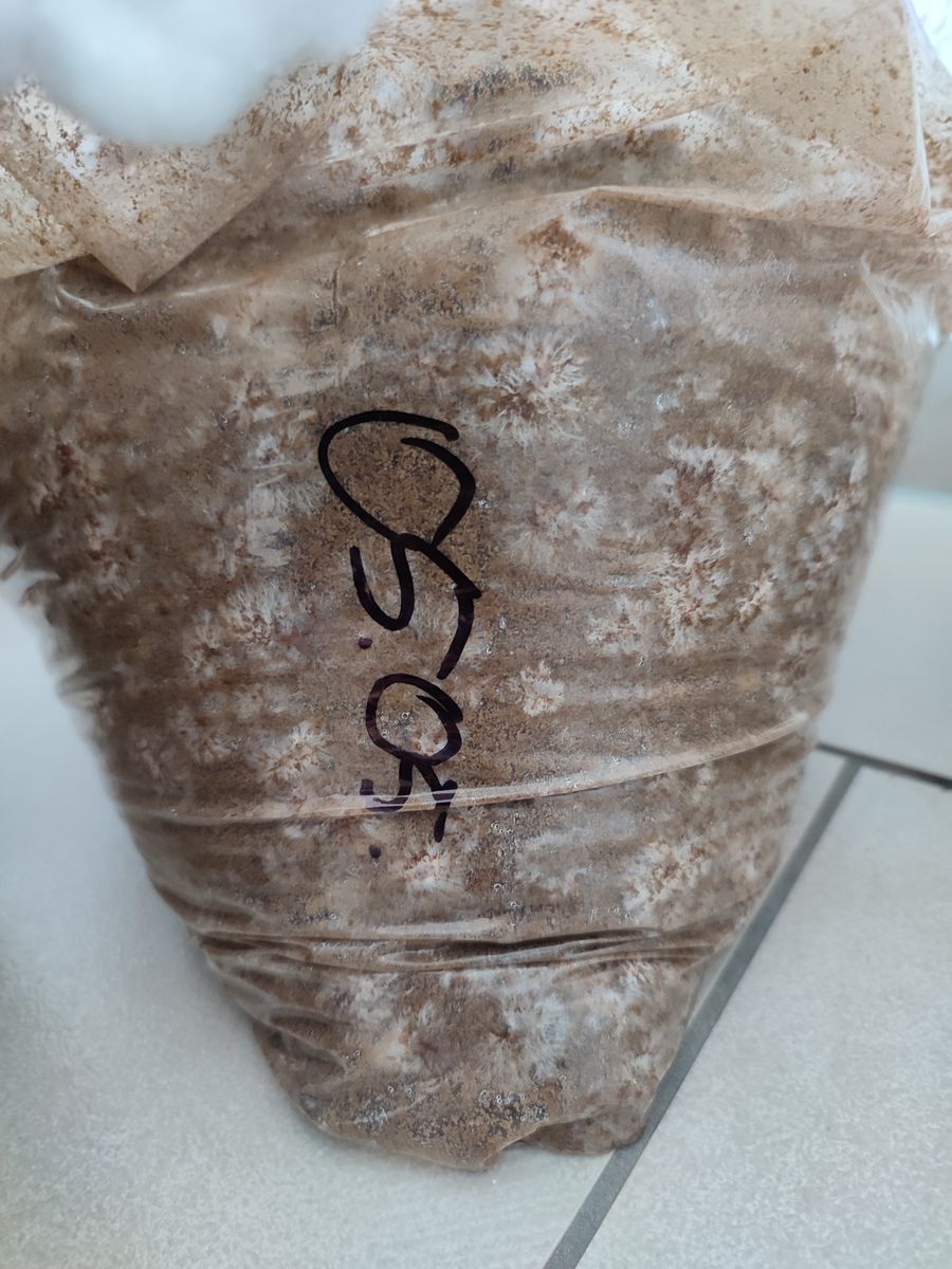 Nebenbei habe ich noch zwei mal 1 kg Hartholzpellets mit 1% Wasserstoffperoxidlösung rehydriert (bewusst viel zu starke Lösung verwendet, normalerweise sollte es 0,5% sein) und mit völlig überlagerter Piopinobrut beimpft. Das selbe mit völlig überlagerter Maitakekultur. Mal gucken was da passiert, die Brut zeigte schnelels Mycelwachstum, das Mycel scheint aber relativ langsam in das Substart rein zu wachsen, wahrscheinlich wegen dem hohen Anteil von Wasserstoffperoxid. Mit der Zeit verfliegt das allerdings und dann sollte das Mycel auch rein wachsen. Spannend zu sehen, ob es Kontis geben wird, oder nicht.