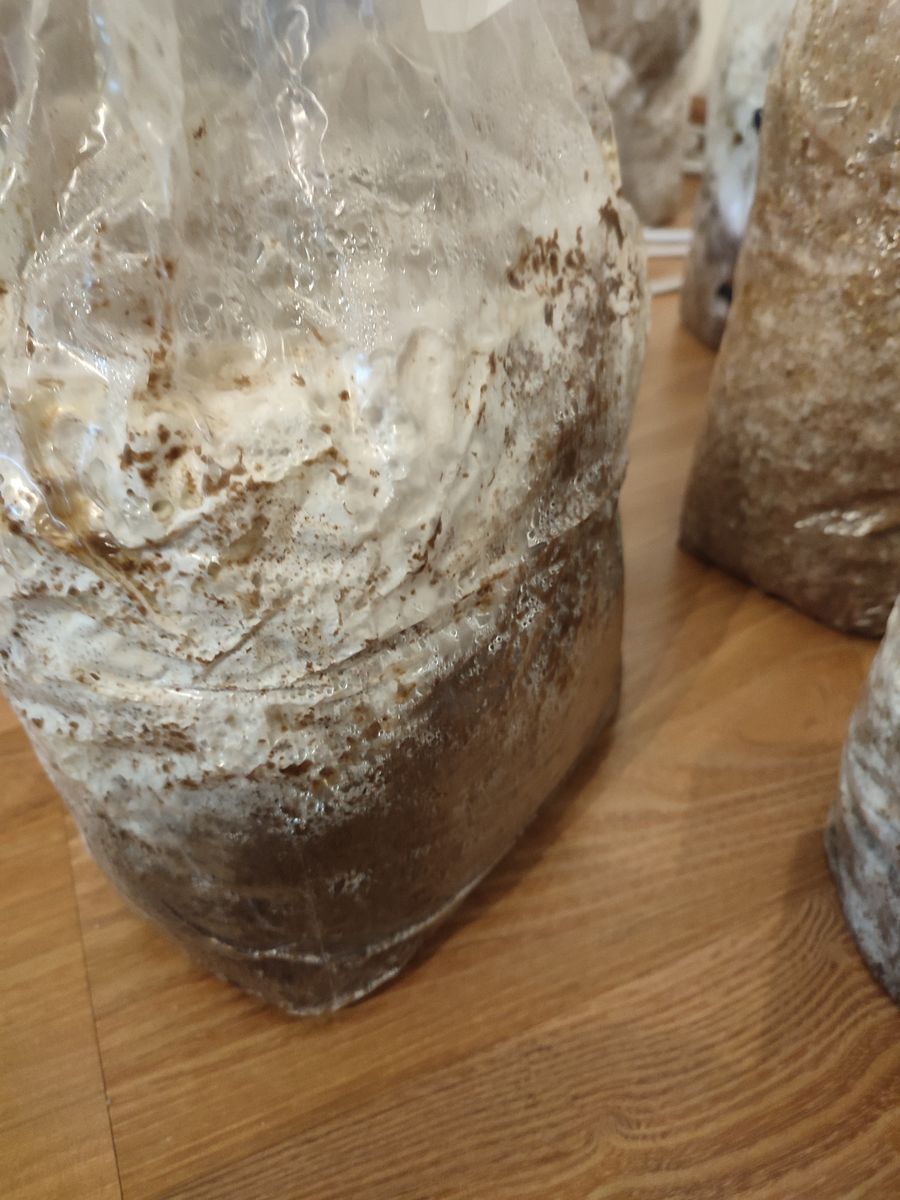 Ein Lungenseitlingsblock (der mit Bierhefe gedüngt wurde) ist komplett durchwachsen und wurde gestern von mir aktiviert und ein Westlicher Korallenigel (Wildfund aus den USA) ebenfalls. Da gesellt sich bald noch ein Espenausterbeutel zu und ein Chestnut Beutel ist auch schon im Endspurt der Durchwachsung.