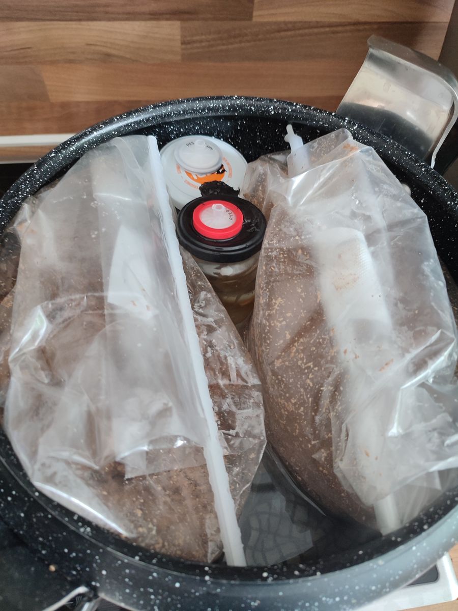 Diverse All in 1 Beutel haben sehr gut losgelegt. Beutel mit Substrat und mittendrin eine kleine "Tasche" in der Körner liegen. Die Körner werden von außen mit Flümy beimpft und dann wird gewartet bis die Körner durchwachsen sind. Anschließend wird der Beutel geschüttelt und geknetet, so das sich die Körner im Beutel verteilen. Dadurch muss man den Beutel nie öffnen und hat damit super Kontaminationsschutz. Scheint gut zu klappen! Habe schon die Merhzehl der Beutel durchschütteln können, nur ein Piopino lässt sich gerade noch etwas Zeit.