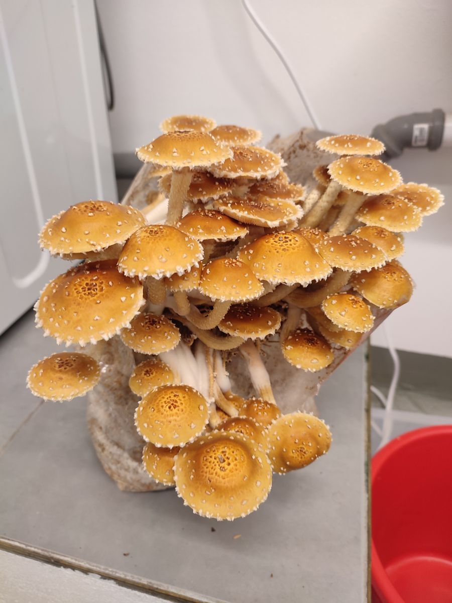 Sobald ein Block aus der alten Box auszieht, werde ich den wilden Stockschwämmchen Block in die Fruchtung schicken, der ist jetzt schon fast ein halbes Jahr alt. Wird Zeit.
