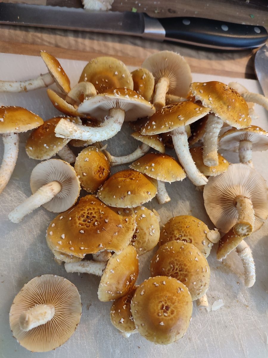 Chestnut mushroom. Der amerikanische Buchenschüppling. Sieht schön aus, hat eine angenehme und feste Konsistenz nach dem Braten, geschmacklich ist er aber eher nichts besonderes. Aufgewärmt kommt sogar etwas Parfüm-artiges zum Vorschein, was ihn dann etwas Richtung Violetter Rötelritterling gehen lässt, aber wie gesagt nur wenn man das Gericht noch mal aufwärmt. Nicht so richtig mein Fall, aber ausprobiert haben, wollte ich ihn. Leicht zu züchten.