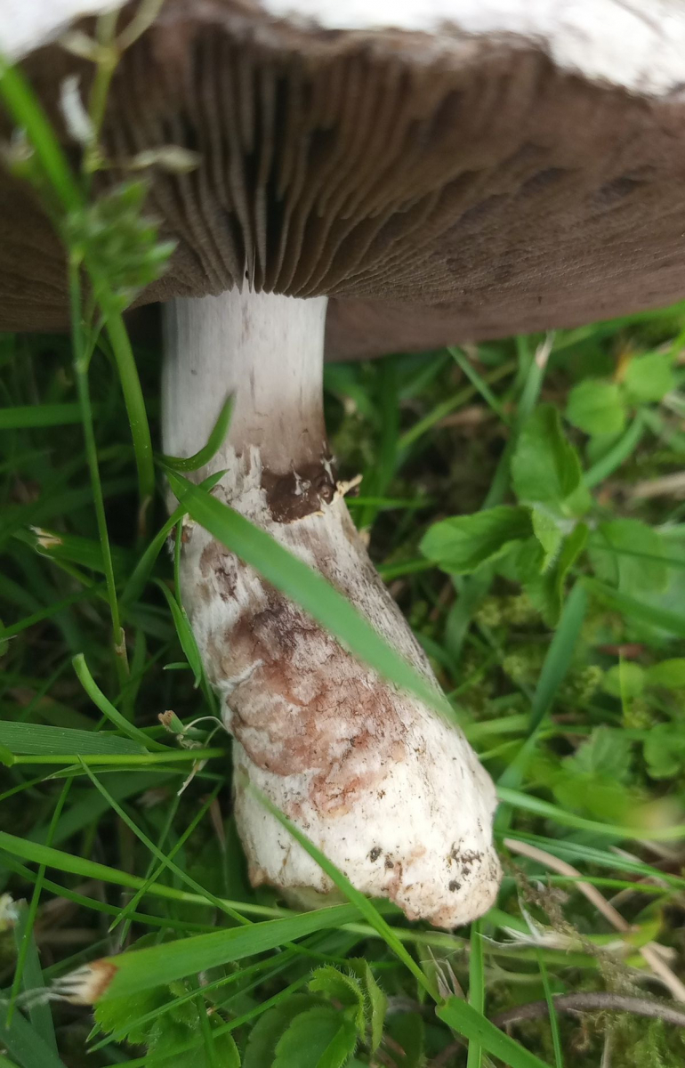 1. Champignon ohne nähere Bestimmung, der die besten Zeiten schon hinter sich hat. Die Flecken am Stiel interpretiere ich mal als röten.