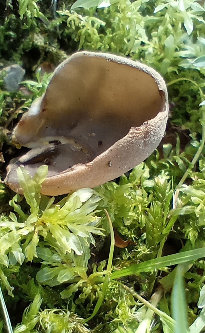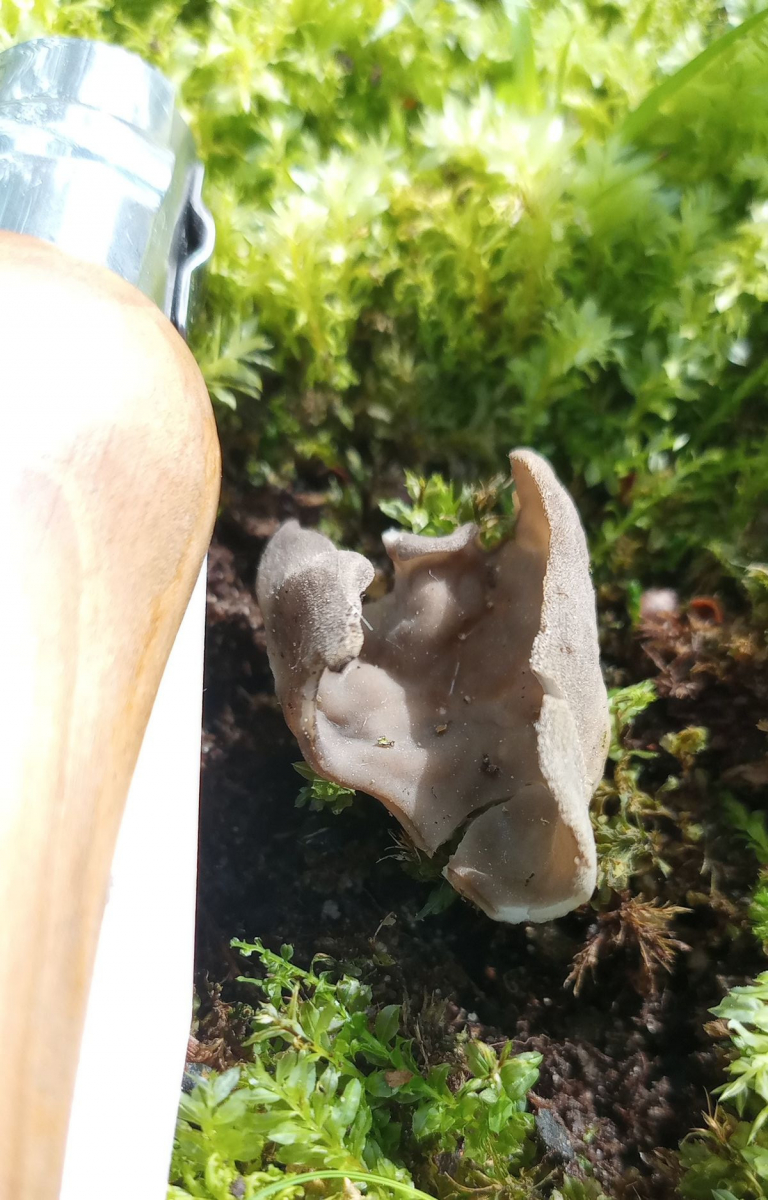 3. Der war ziemlich klein, ich glaube aber, der geht trotzdem als Großpilz durch. Becherlinge.... schwierig. Ich tippe auf die Hochgerippte Becherlorchel (Helvella acetabulum). Wächst im Moos nahe bei Eichen.