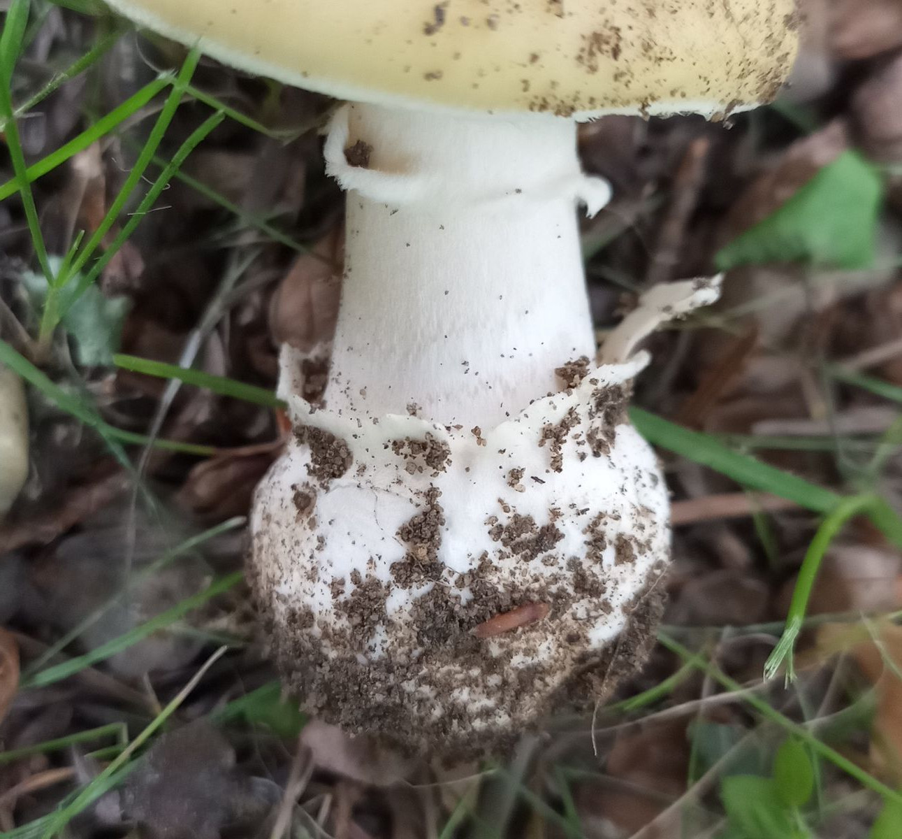 Ich dachte zuerst an einen Narzissengelben Wulstling. Da stimmten Geruch und fehlendes "Söckchen" aber nicht. So bleibt's beim Perli.