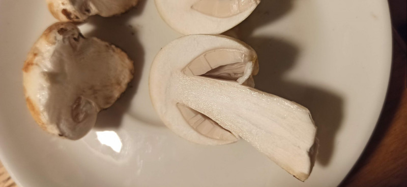 habe ich hier einen Anisegerling gefunden? Riecht nach Anis, leichtes Gilben am Hut, nur die Lamellen schauen mir etwas zu dunkel aus. Unter dem Velum Partiale haette ich mehr rosa erwartet. Was denkt ihr? Fundort unter Palette am Bienenstand/Wiese.Lg Seb