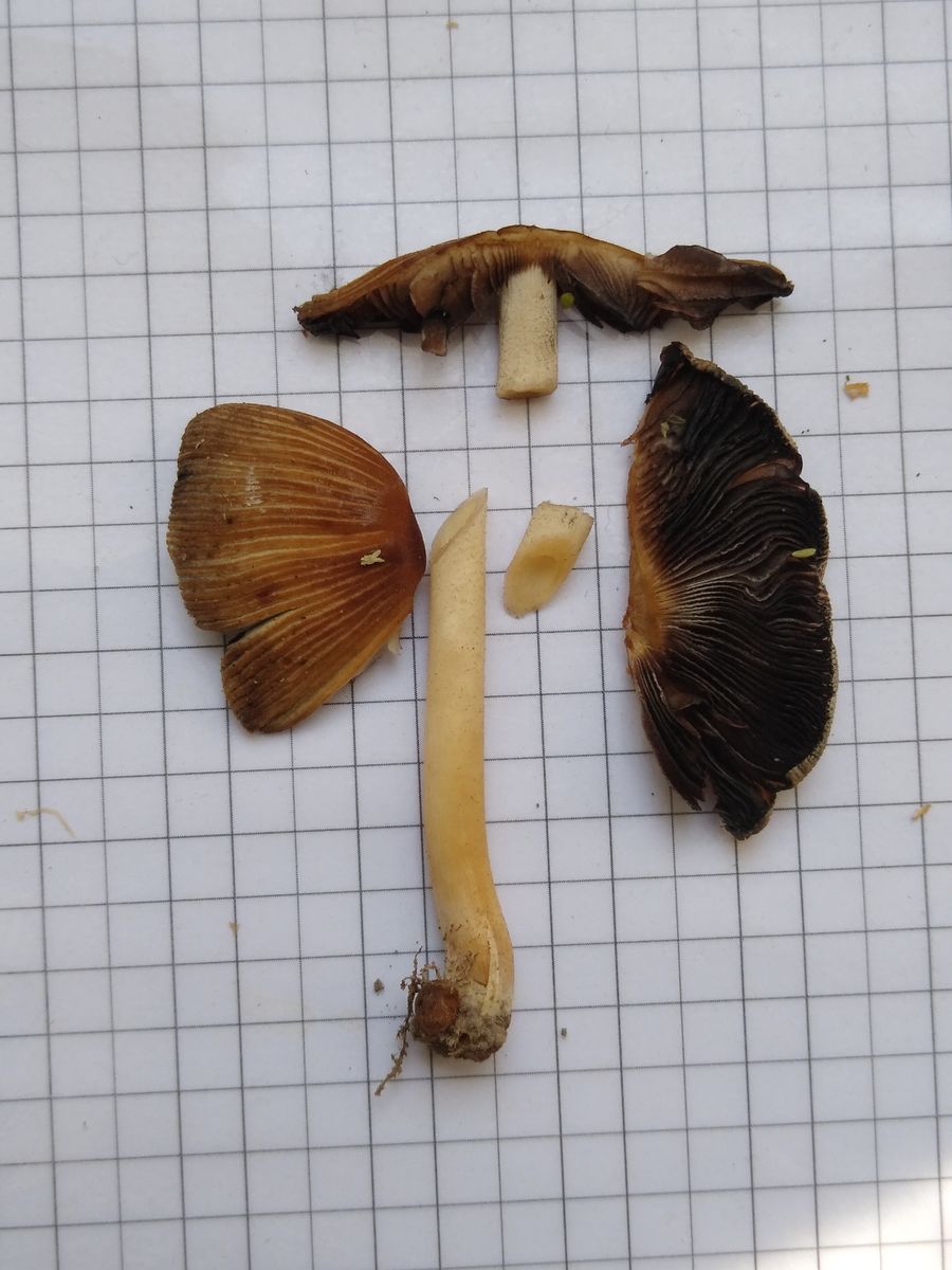 Bild 5 Die schwärzlich besporten Lamellen sind angeheftet; der Stiel ist 4-5mm dick, hohl.