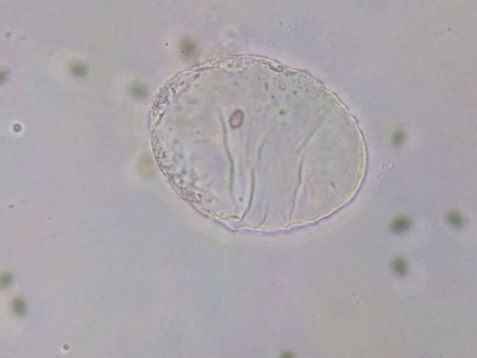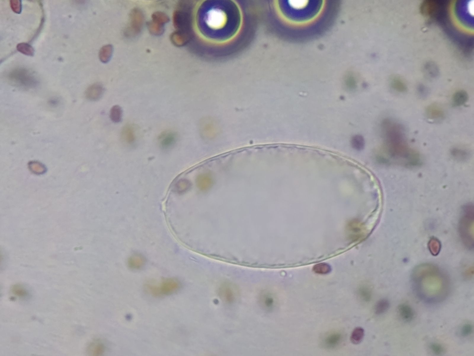- gelbe Velumreste auf Huthaut (?) = runde flache Zellen in Klumpen