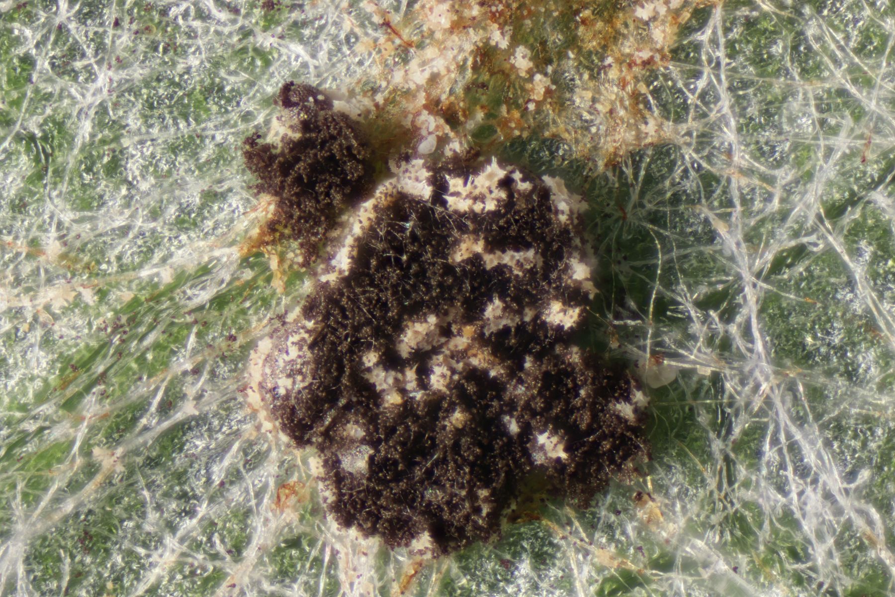 nachdem hier im Forum vor längerer Zeit ja schon von den beiden Didymium-Arten auf Pestwurzblättern berichtet wurde, konnte ich am letzten Sonntag in Winterberg selber welche finden. Leider bin ich mir nicht ganz sicher, welche der beiden Arten ich hier vor mir habe. Die dunkle Farbe spricht eher für D. tussilaginis, könnte aber auch ein Artefakt sein, weil die Peridie bei den meisten Fruchtkörper schon ziemlich abgewetzt ist und man nur noch Sporenmasse sieht. Sporenmaße von 10.1-11.7 µm passen eher zu D. vernum, auch wenn sie da wohl eher einen Hauch zu groß sind. Schließlich fällt noch das relativ locker verteilte Wachstum auf, das sich auch eher auf den Rand des Blattes beschränkt. Laut Literatur auch ein Hinweis auf D. vernum. Was sagen die Expert:innen dazu?