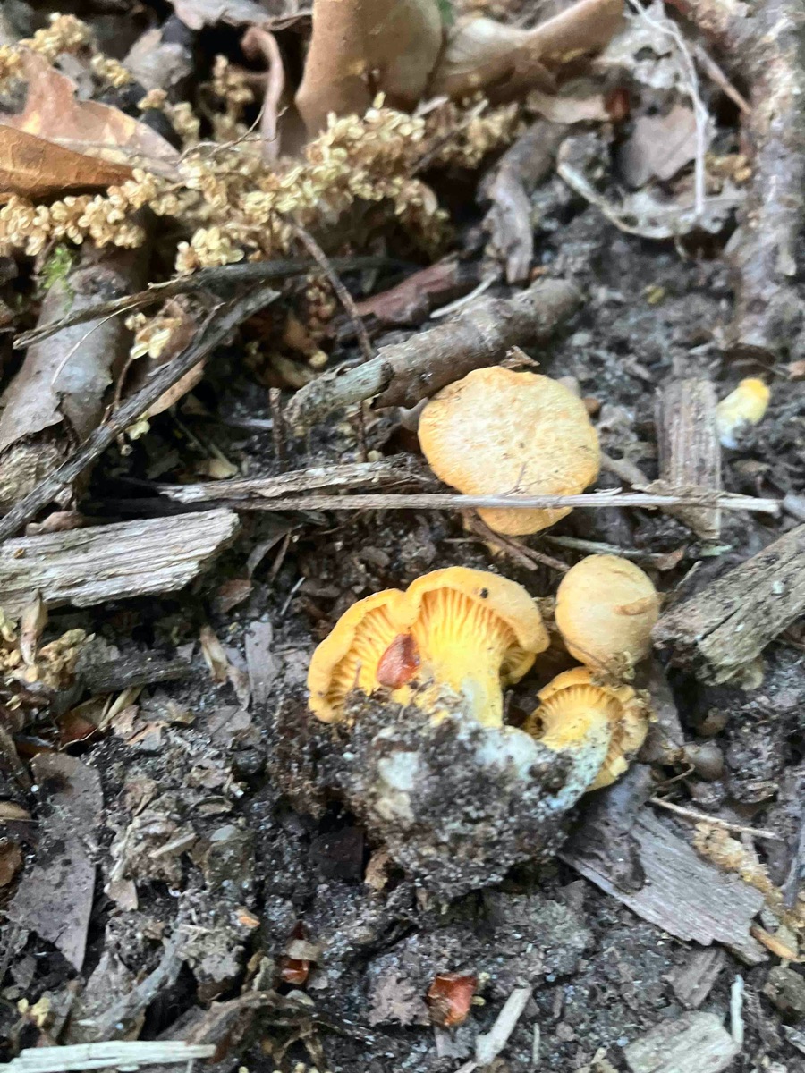 . Sorry. Aber dafür kann ich beweisen, dass er existiert, der Pfifferling an sich. Und zwar innerhalb der Landesgrenzen Berlins und bei zweithöchster Waldbrandgefahrenstufe. Ganz viele kleine, blasse Köpfchen unter den Blättern. Zum Sammeln zu mühsam – aber für mich Pilzverrückten war der Anblick Lohn genug: