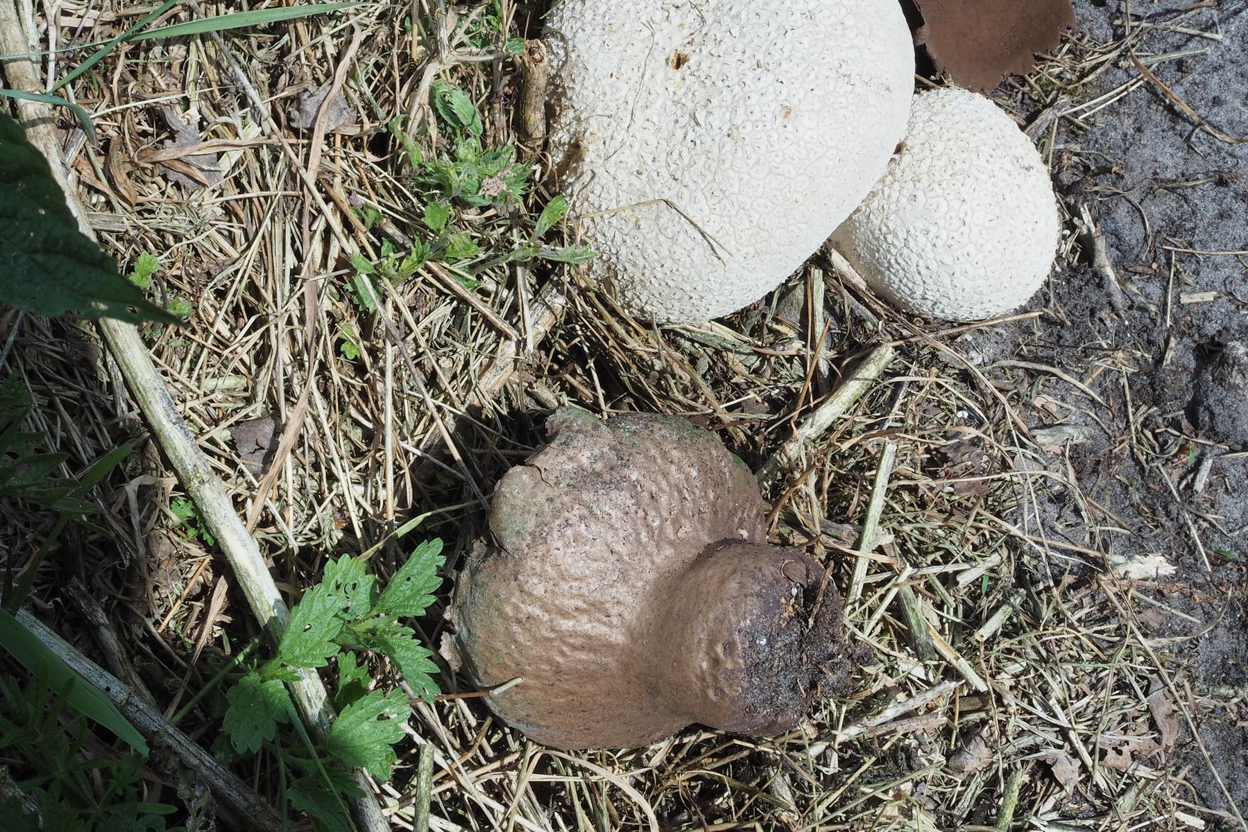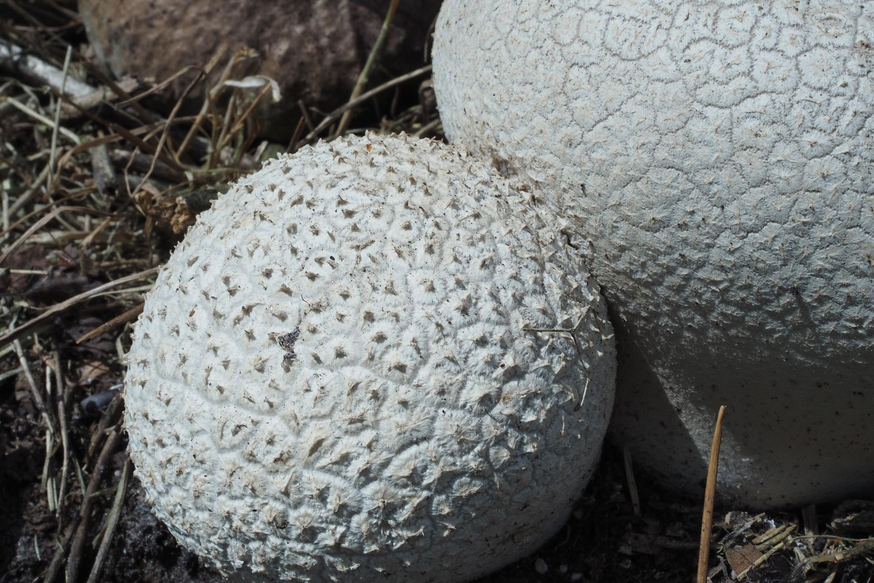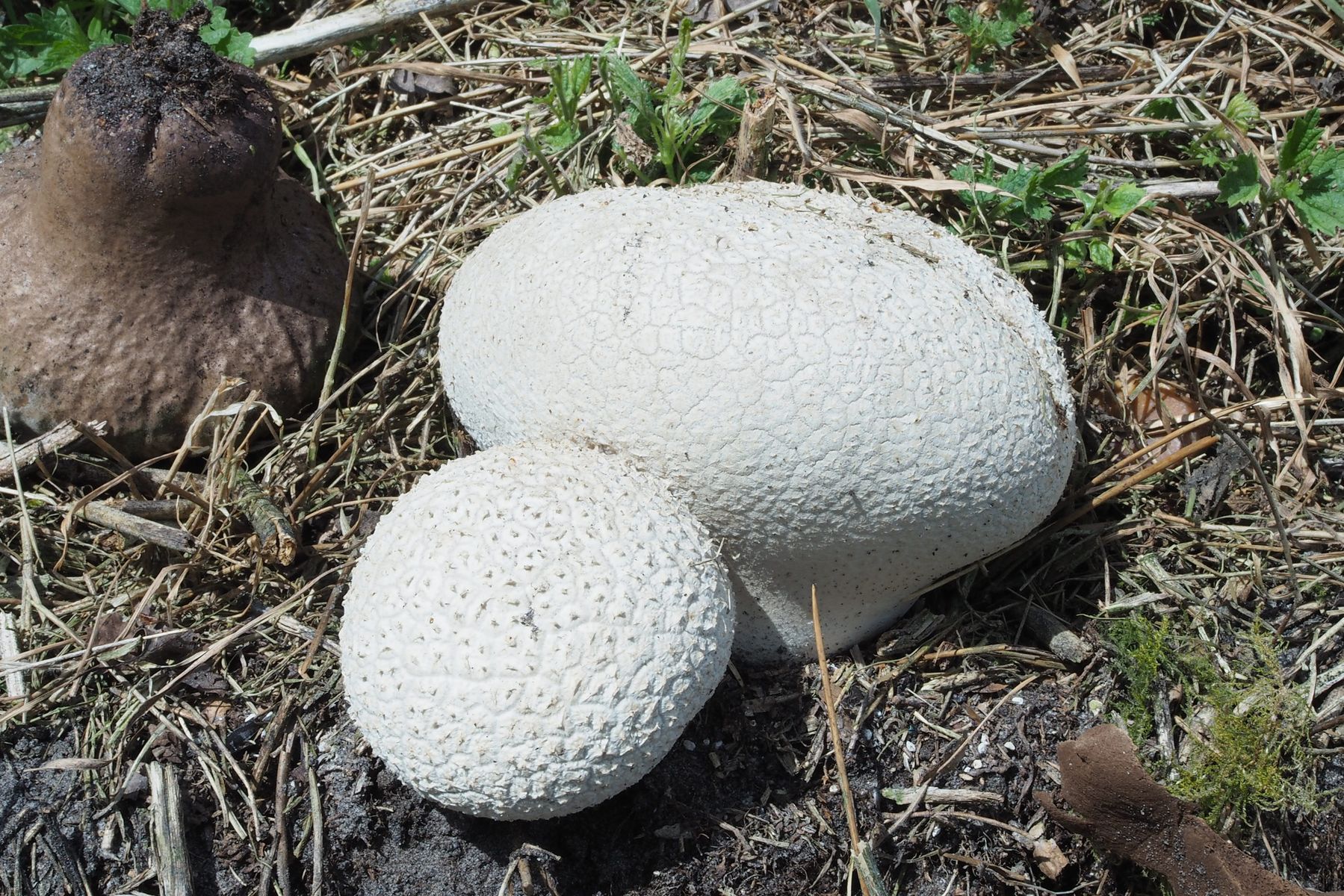 Ich nehme an, dass es sich um Hasen-Stäublinge Calvatia utriformis handelt.