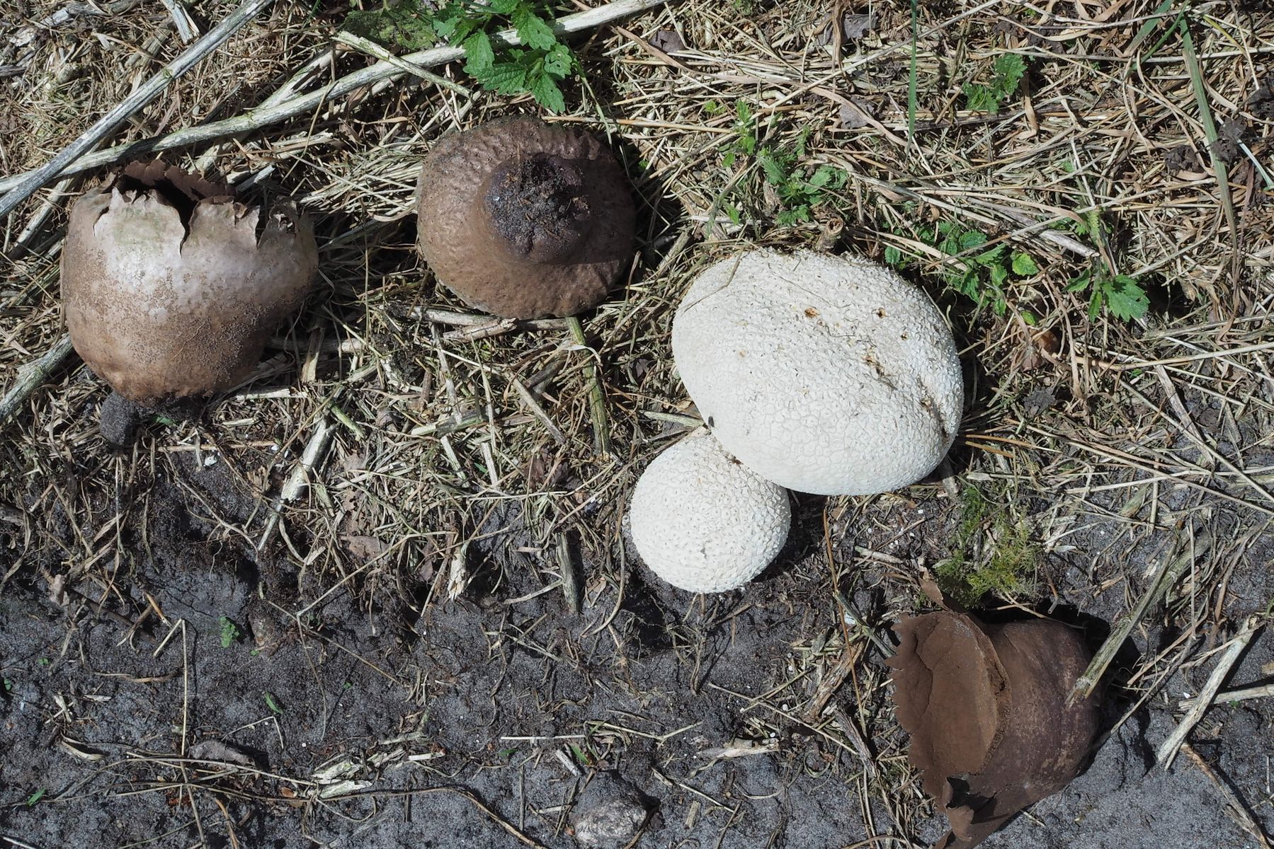 vor wenigen Tagen habe ich in meinem Revier neben einem Maisfeld im Altgras die abgebildeten Pilze gefunden.