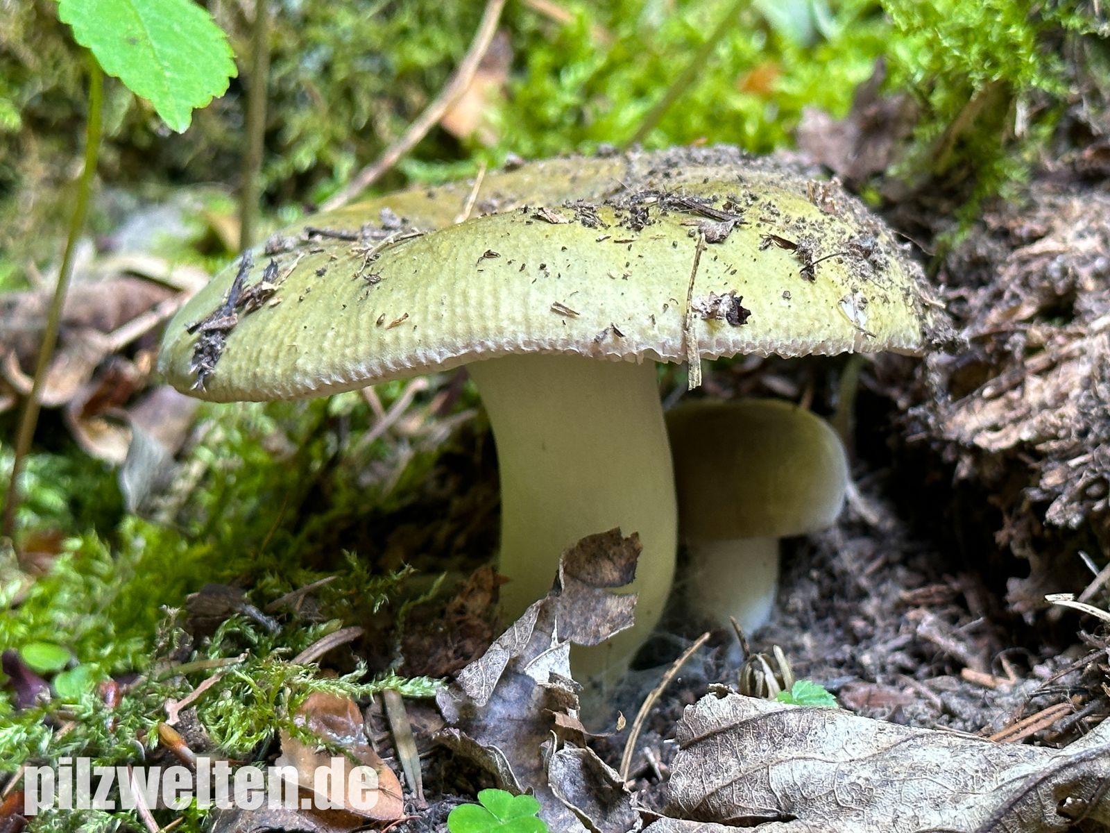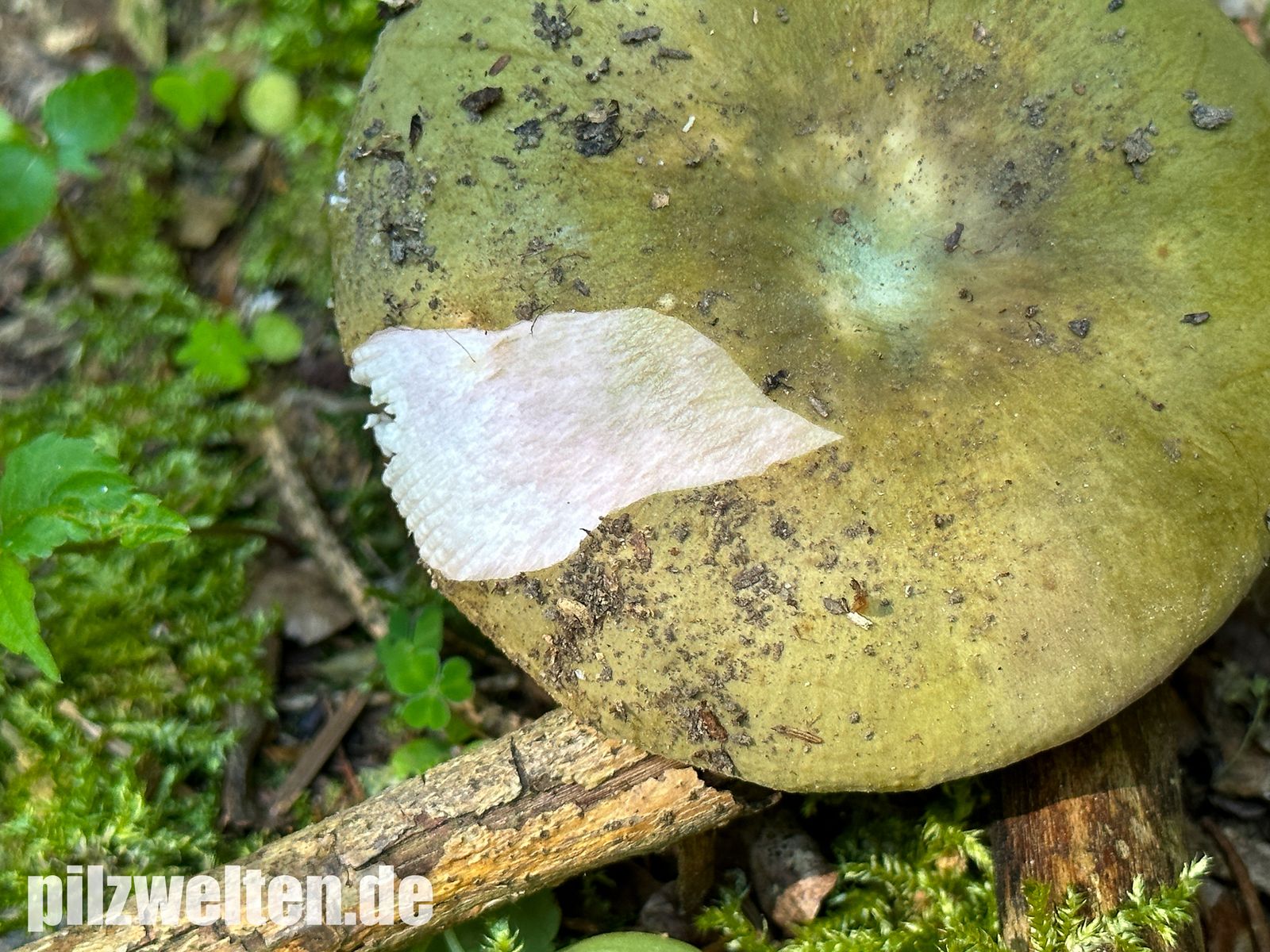 Huthaut weit abziehbar und darunter (vor allem in Richtung Hutmitte) etwas grünlich verfärbtes Hutfleisch:
