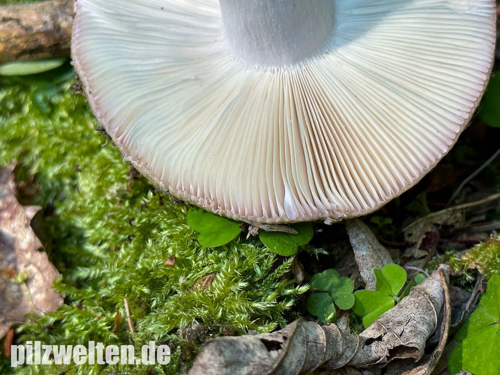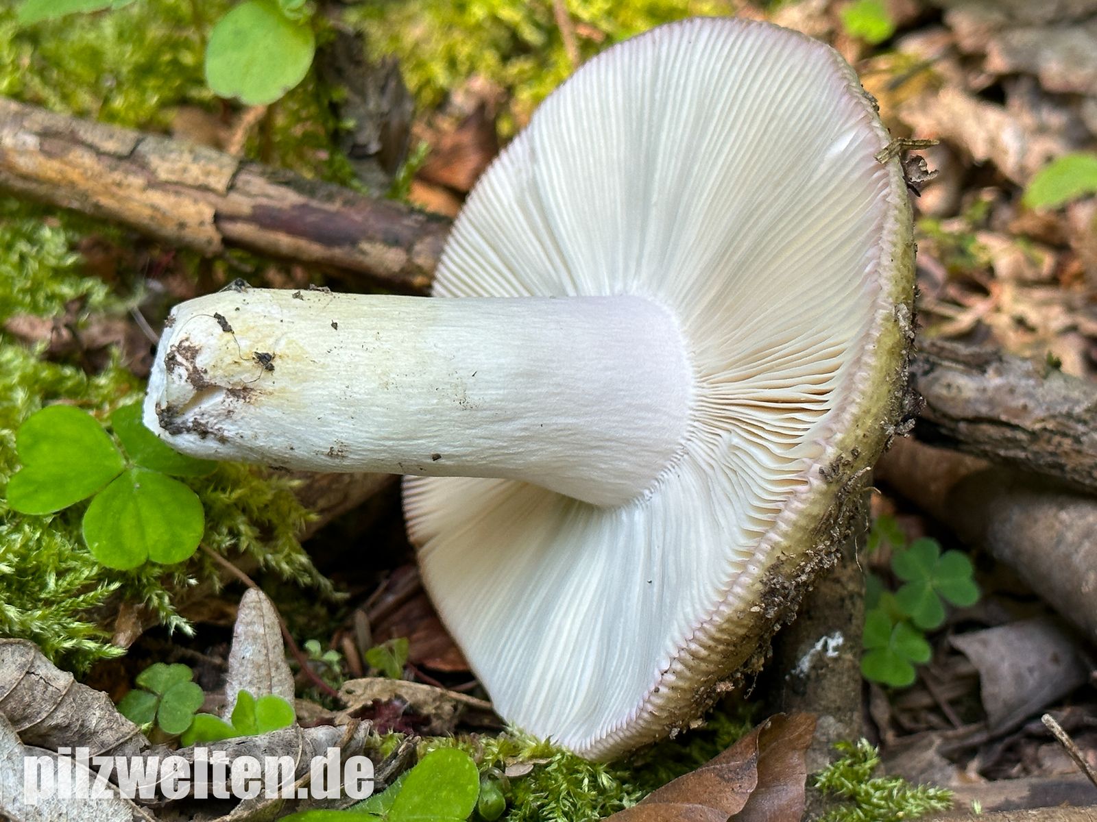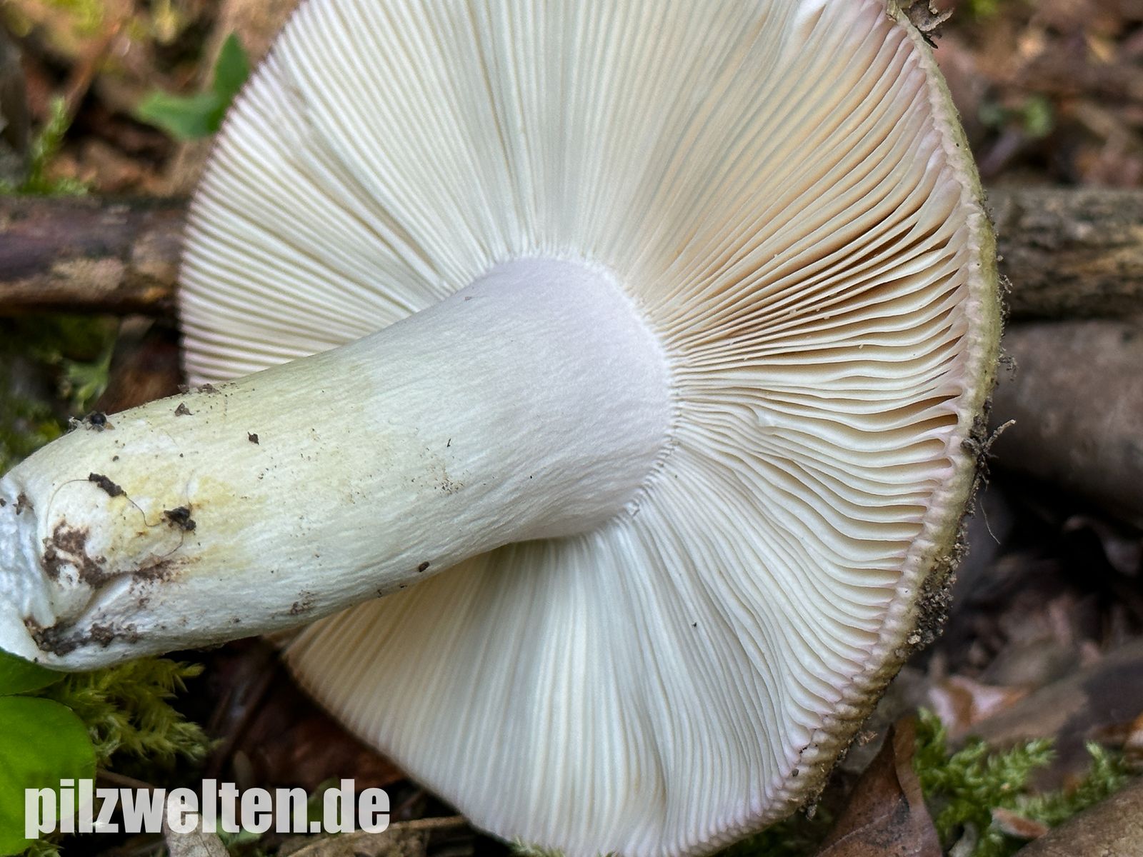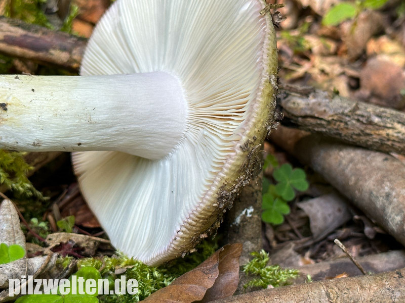 Hutunterseite: Durchgängig weißlich gefärbte Lamellen & brüchig