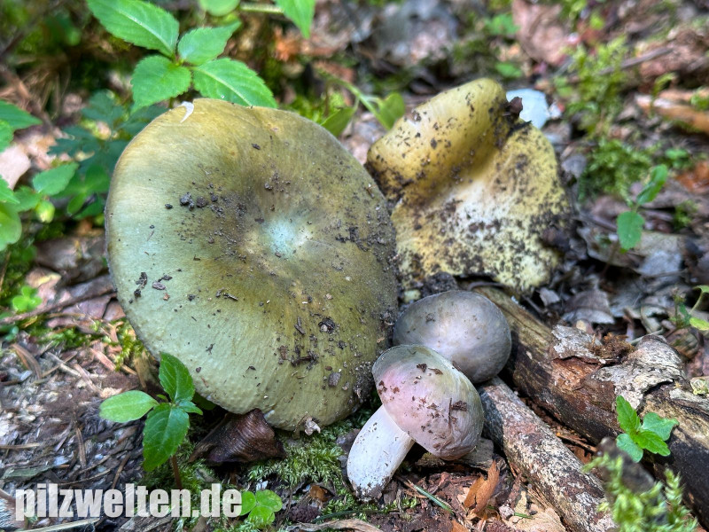 an folgendendem Täublings-Erstfund beiße ich mir gerade wieder einmal etwas die Zähne aus. Vom ersten Eindruck her bei einigen Fruchtkörpern: Frauentäubling mit splitternden Lamellen - das klingt doch stark nach Russula ionochlora - allerdings wechselt die Art scheinbar extrem die Farbe. Sind die folgenden Farben bei Russula ionochlora theoretisch noch im Bereich des Möglichen? (da ich die Art bisher noch nicht hatte, hab ich noch keine Erfahrung zu den gängigen Farben von Russula ionochlora sammeln können, konnte in einer ersten Nachlese aber auch keine vergleichbar grünen Funde der Art finden).