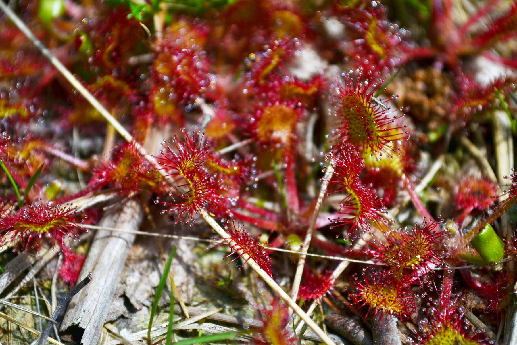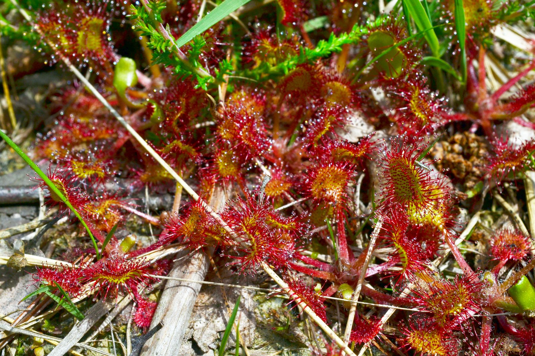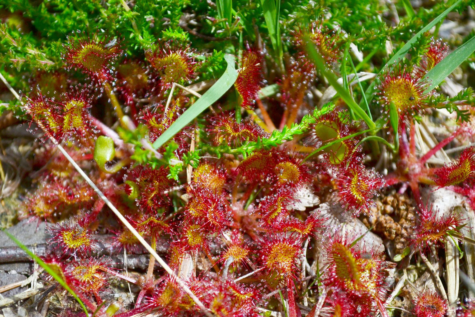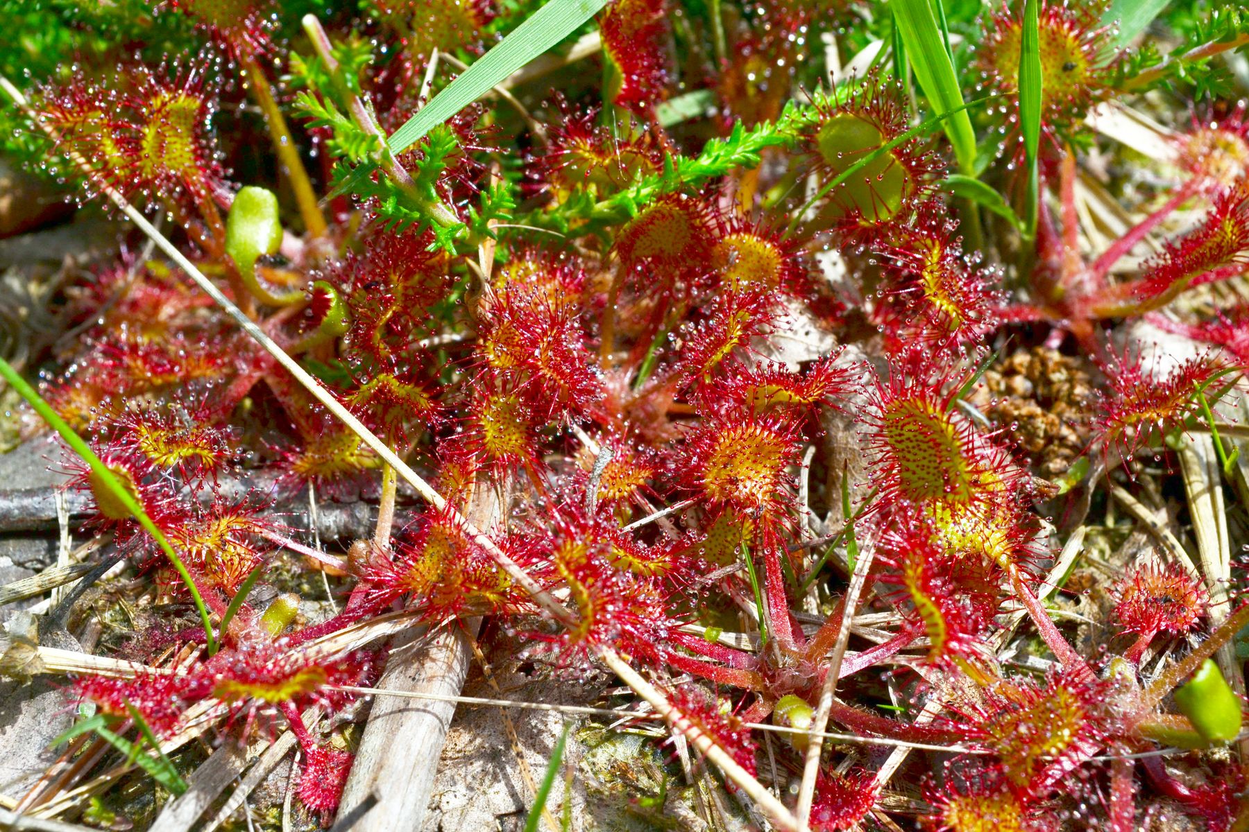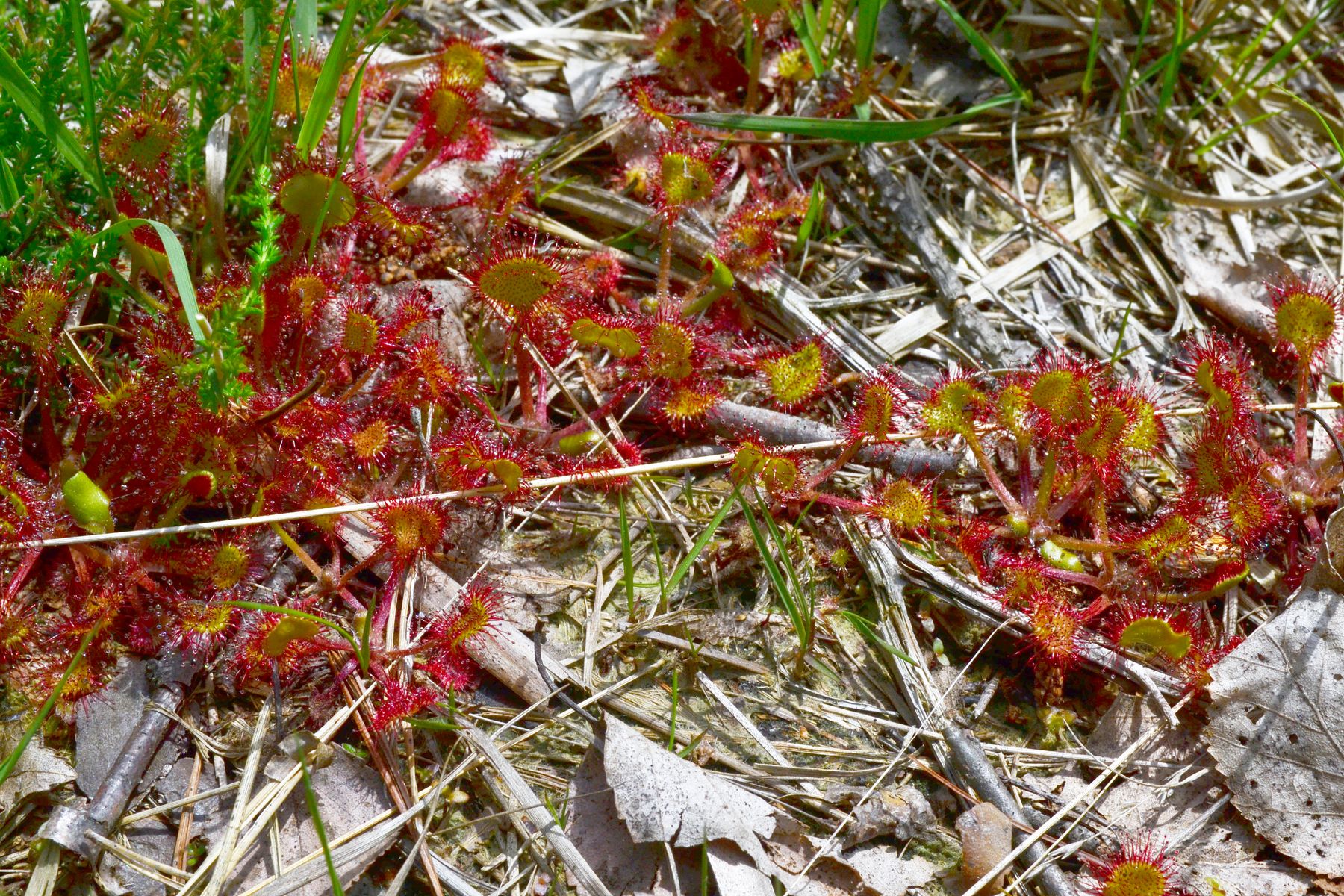 carnivore Pflanzen faszinieren mich seit vielen Jahren, aber außerhalb des Einzel- und Online handels habe ich diese Pflanzen nie zu Gesicht bekommen. Umsomehr freute ich mich vor einer Woche, als ein bemerkenswert roter Fleck in der ansonsten grünen Umgebung meine Aufmerksamkeit erregte. Bei näherer Betrachtung staunte ich nicht schlecht, dass es sich dabei um wild wachsenden Sonnentau handelte. Ich bleibe hier erst mal bei Drosera spec. . Wenn jemand diese Art einwandfrei benennen kann würde ich mich sehr freuen ![]()