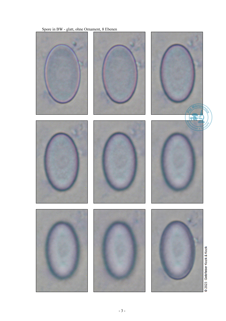 PS: Seite 3, Sporen in Baumwollblau wäre nicht notwendig gewesen aber es gibt einige Pilzler die in BW gefärbte Sporen sehen wollen um auch „sicher“ sagen zu können, das die Sporen glatt ohne Ornament sind ![]()