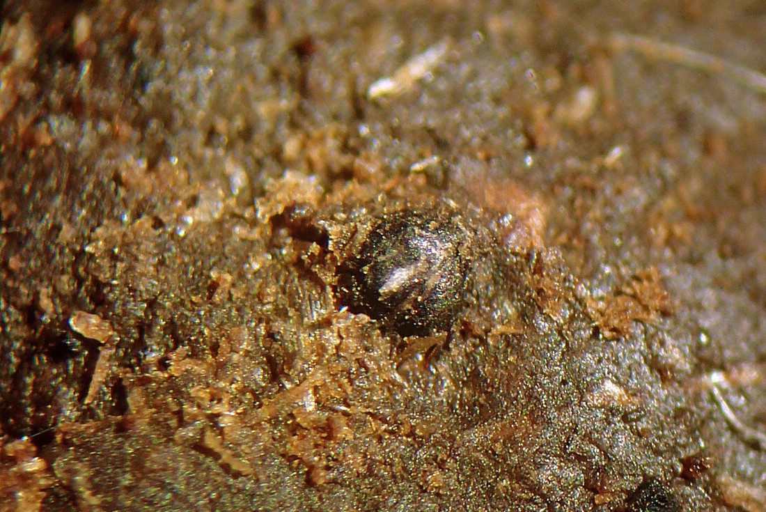 Die kleinen kugeligen Cleistothecien (hier 0,15 mm) kann man schnell übersehen. Es gehört schon etwas Glück dazu, sie zu finden.