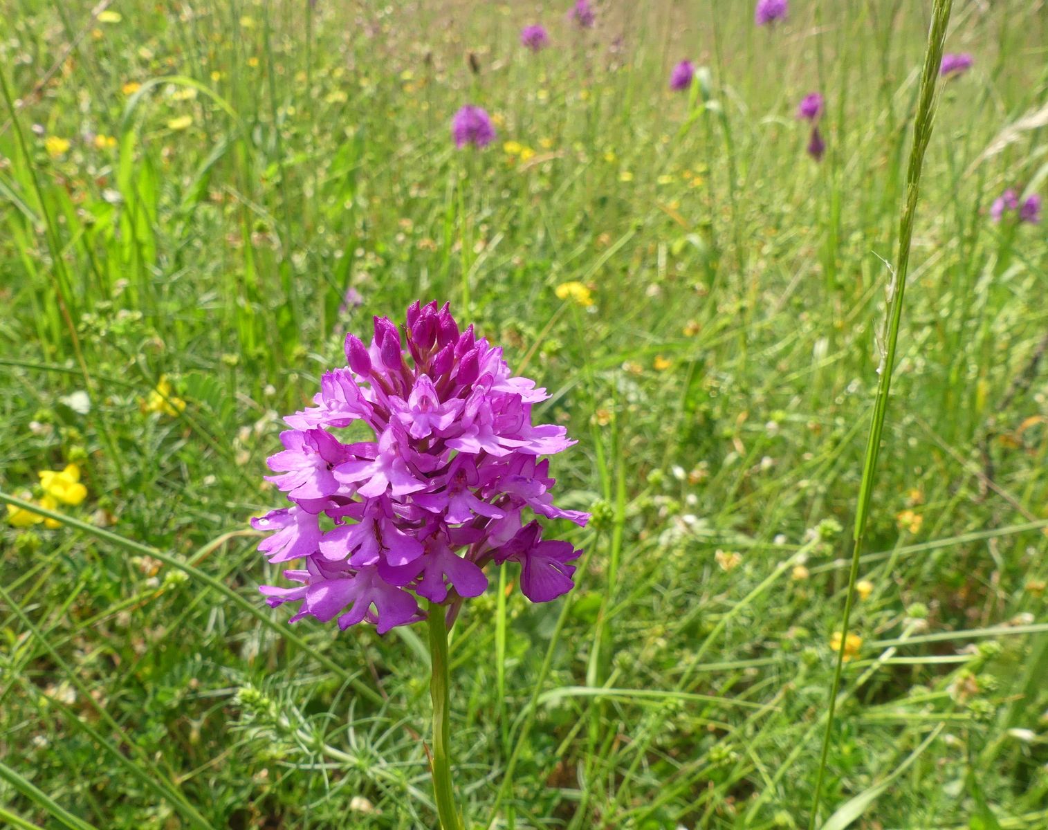 Nach einiger Zeit sah ich im Gras etwas pinkfarbenes. Eine Pyramiden-Hundswurz (Anacamptis pyramidalis), aber ich sah nur die eine.