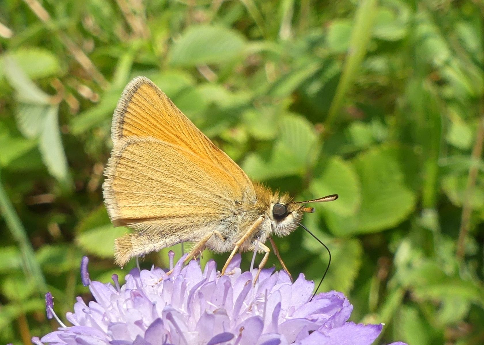 Endlich zeigten sich etwas mehr Insekten, so wie dieser Dickkopffalter. Schwarzkolbiger Braun-Dickkopffalter (Thymelicus lineola)