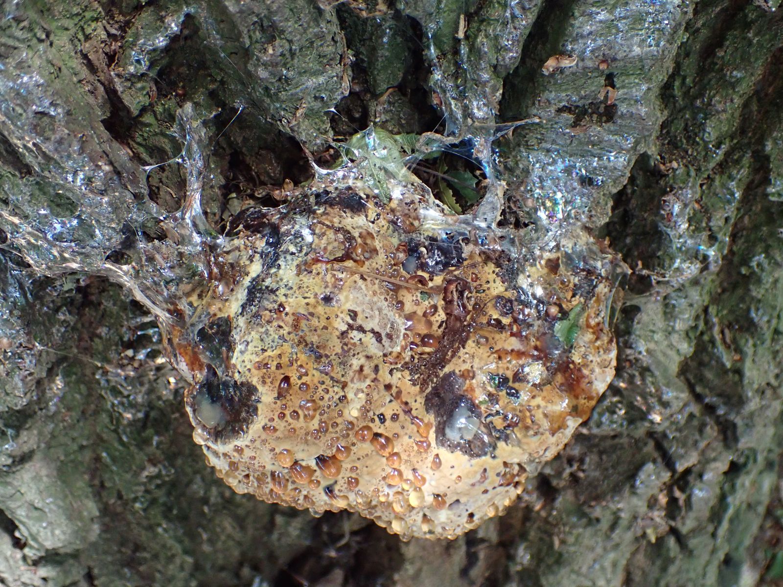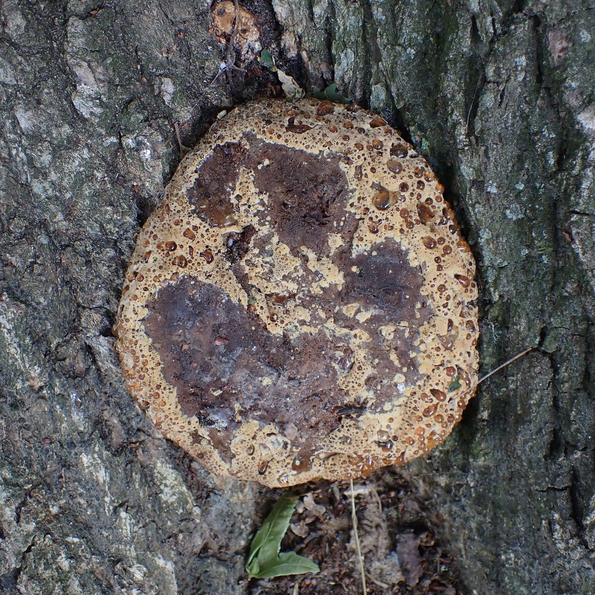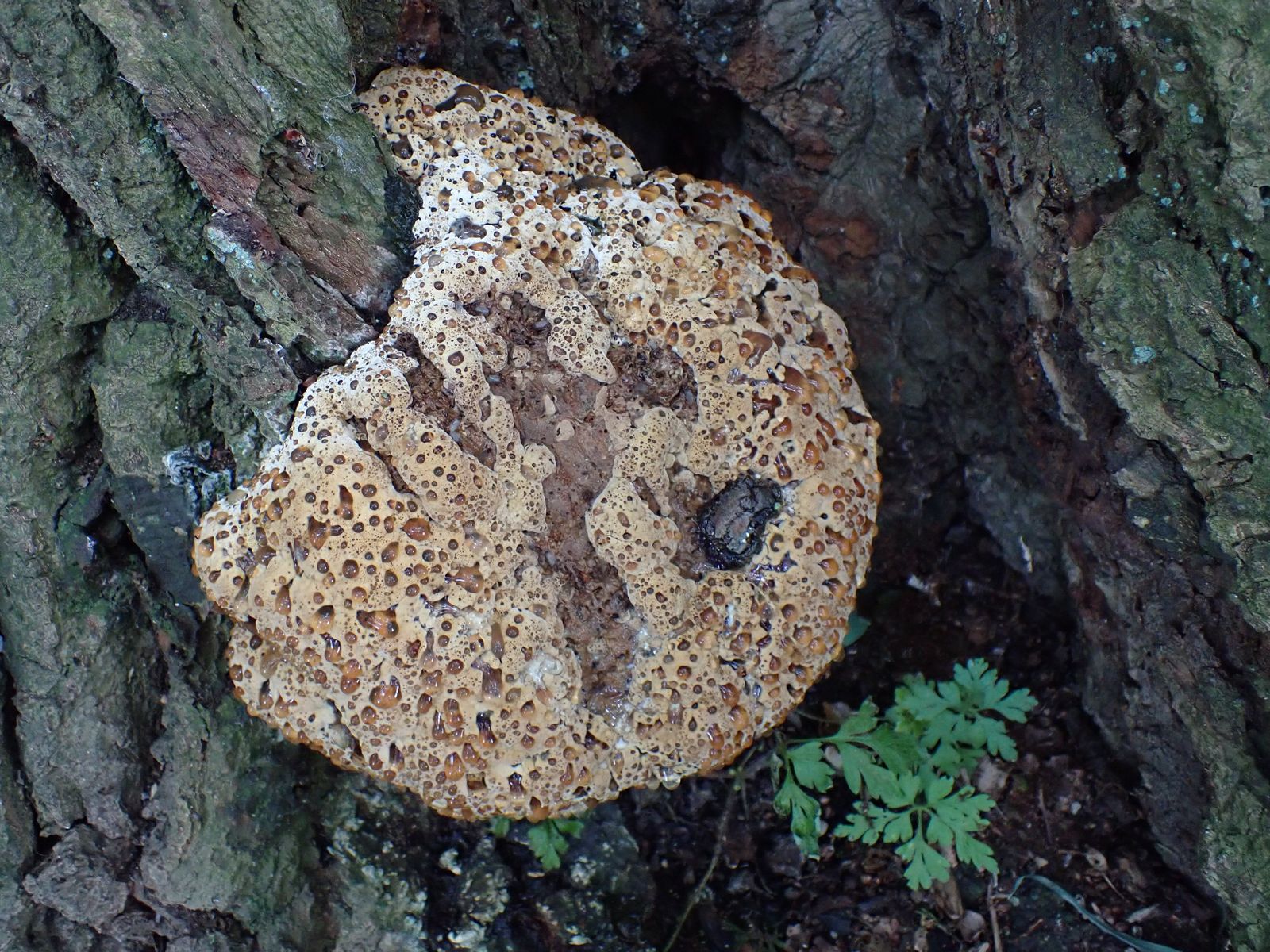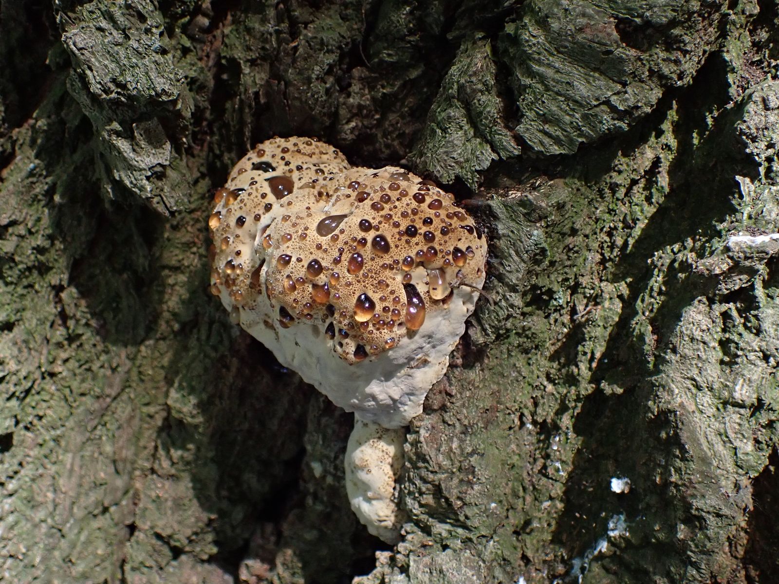 ich finde den auch faszinierend, sieht fast aus, wie diese Baiserschicht, die man manchmal auf Rhabarberkuchen findet. Eiche ist der typische Wirt für den Tropfenden Schillerporling.