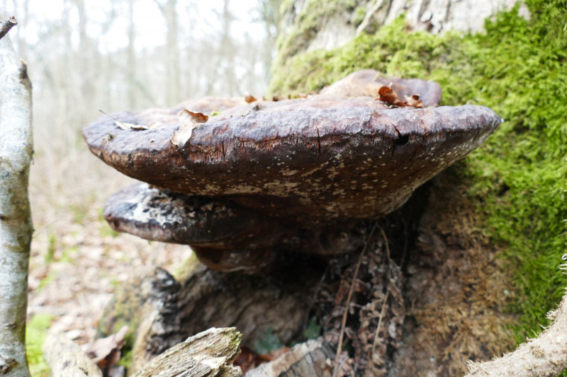 Ich habe Inonotus dryadeus selbst erst sechsmal gefunden, da sind drei gefällte Bäume ganz schön viel!