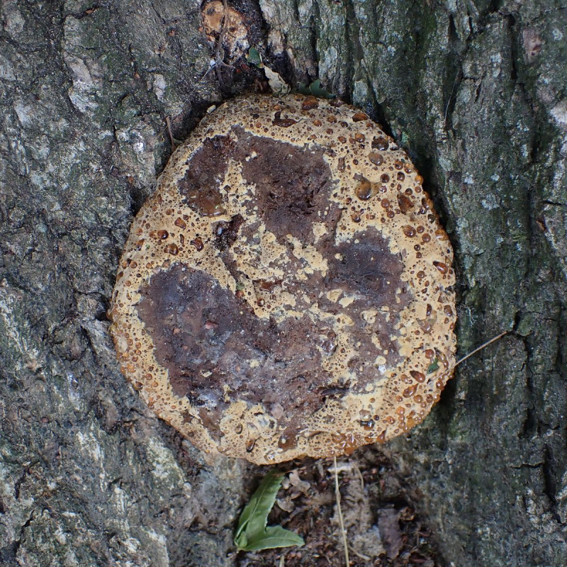 ich finde den auch faszinierend, sieht fast aus, wie diese Baiserschicht, die man manchmal auf Rhabarberkuchen findet. Eiche ist der typische Wirt für den Tropfenden Schillerporling.