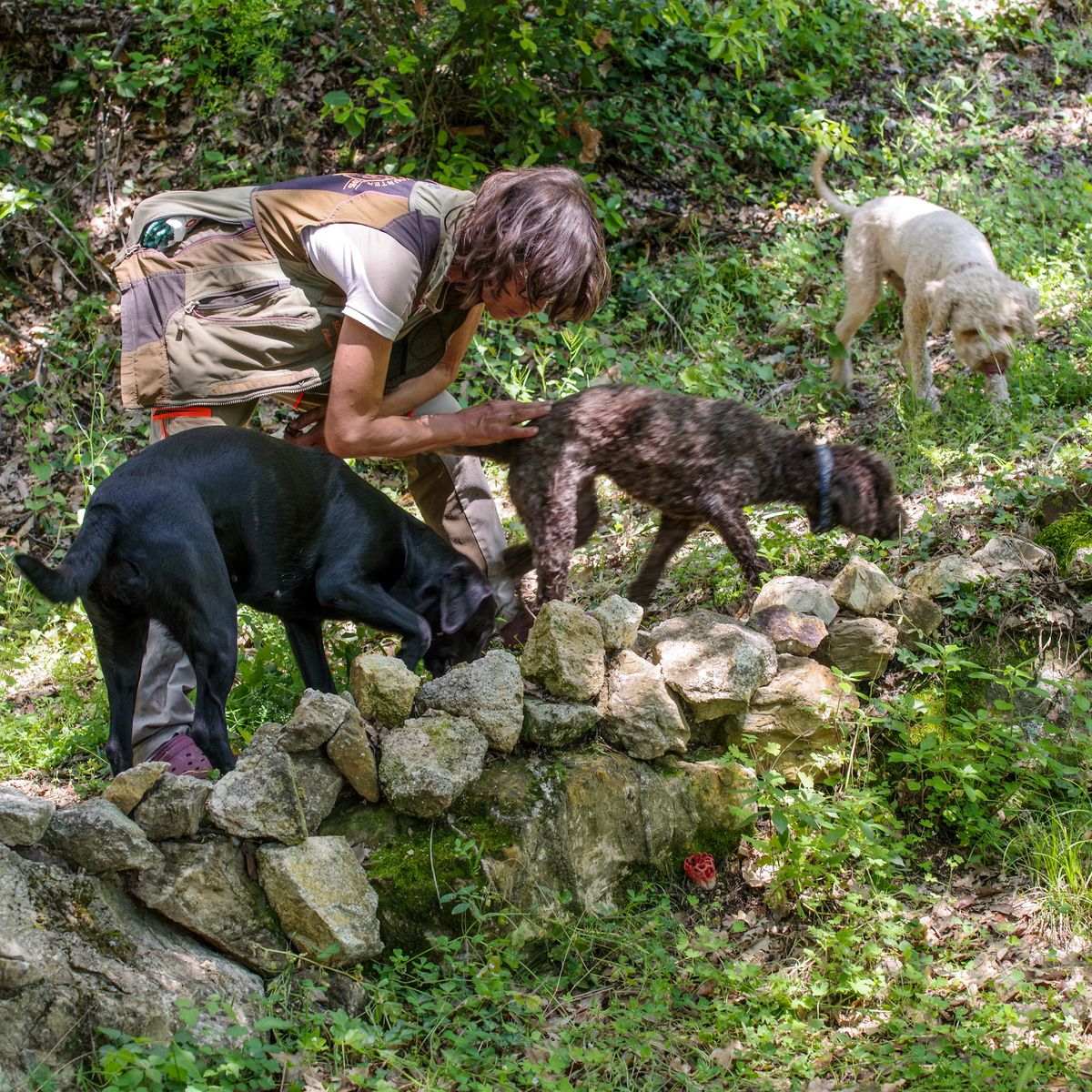 Danke für eure Nachrichten und die wunderbare Grafik. Soeben waren Trüffelsuchhunde (zufällig!) direkt daneben und wurden fündig. War aber kein eßbarer, sagte die Trüffelsucherin. Im Foto schaut sie sich gerade den Trüffel an, der Gitterling ist darunter zu sehen. In Italien ist Trüffelsuchen offenbar eine Art Volkssport, so die Frau.